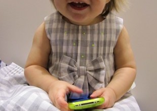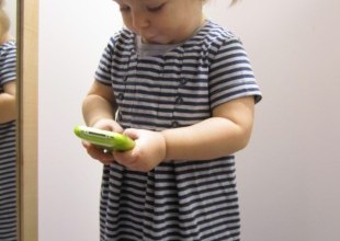 C’est la robe grise et blanche avec pois jaune (oui le jaune fluo qui s’assortit si bien à mon iPhone!) qui nous a complètement séduites, idem pour Évie qui nous a offert son plus beau sourire de toute la séance. Qui a dit que l’habillement n’influençait pas l’humeur? La maman souriait un peu moins quand elle a vu l’étiquette : 45,90 $. Mieux vaut avoir plusieurs occasions spéciales afin de la rentabiliser.