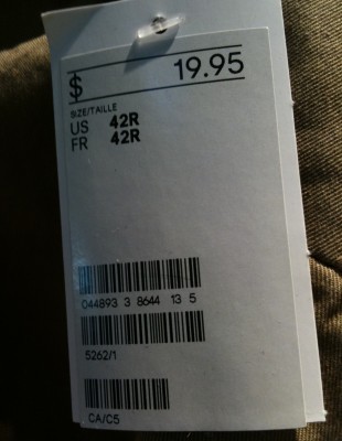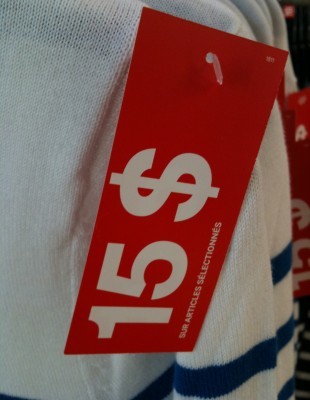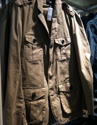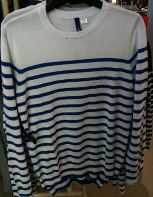 Une veste militaire beige en coton à 20 $ et un tricot matelot (à rayure sarcelle, n’ayez pas peur du sarcelle messieurs) à 15 $. À porter ensemble ou séparément.
