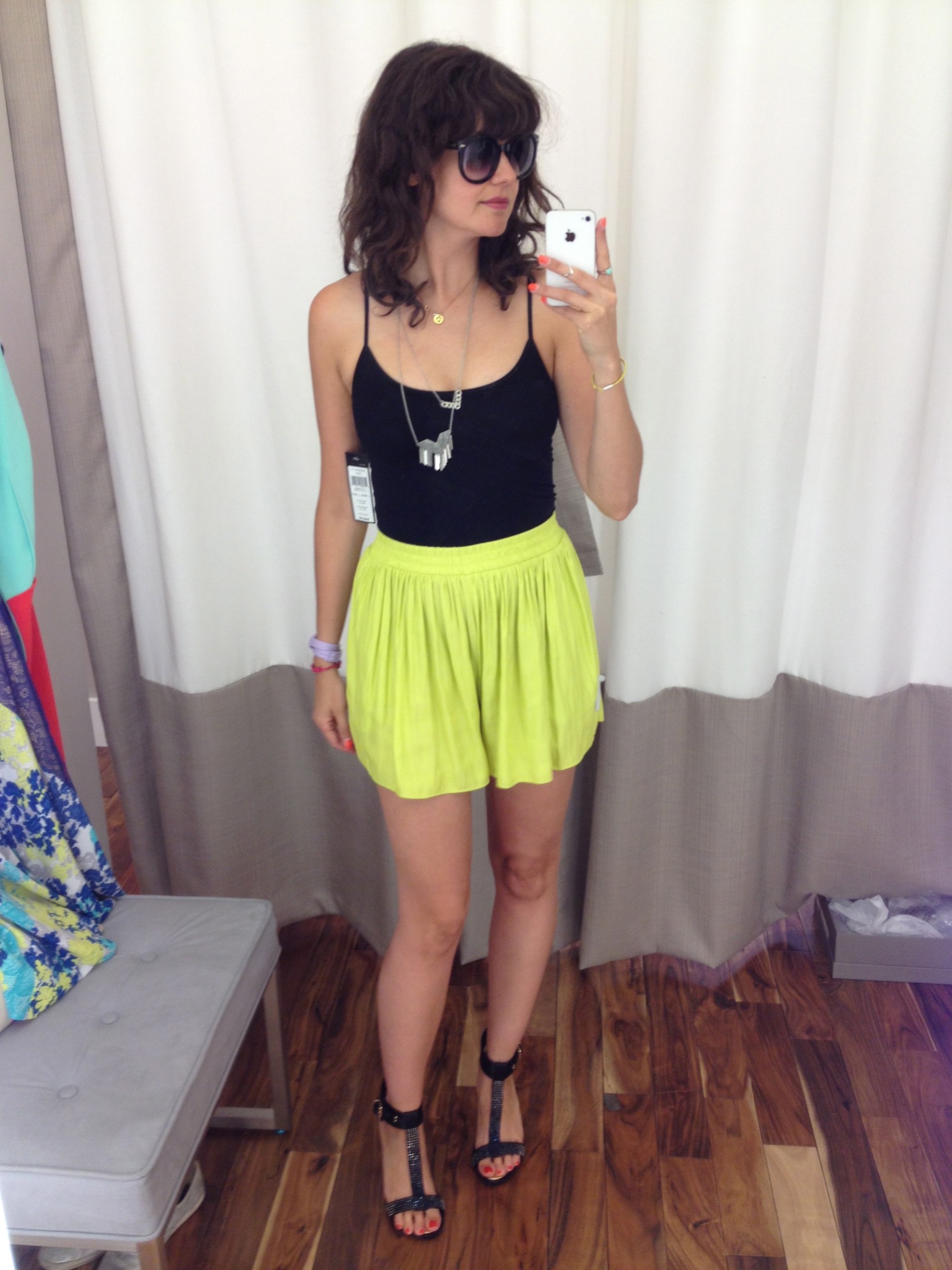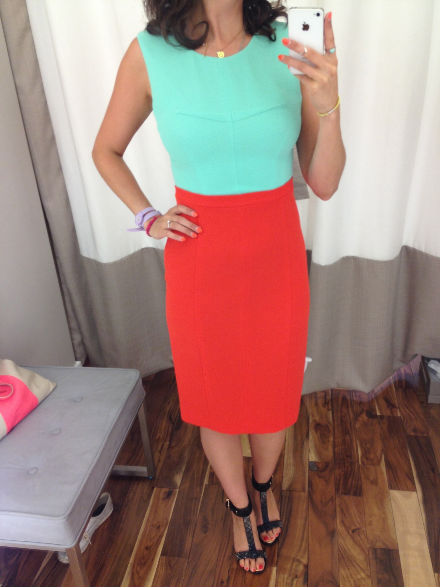 2e arrêt lors de ma petite escale au Quartier Dix30, toujours à la recherche de robes : le BCBG. Il y avait un 30% additionnel sur les soldes alors j’en ai profité qqs morceaux. J’ai toujours aimé le mélange entre turquoise et rouge alors je n’ai pu résister à la petite robe classique. Vous la verrez probablement dans une capsule LaPresse+ bientôt! Et j’aurais volontiers acheté les petites shorts jaunes mais, pour tout vous dire lorsque portées taille haute, elles étaient un peu trop dans mon califourchon…