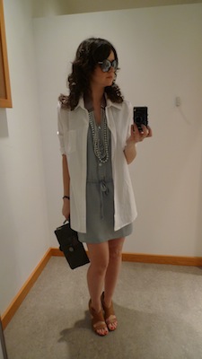 Mention particulière pour le sac à main à 60 $ et les magnifiques souliers oxford à 100 $, de chez Locale. Et pour la robe de soie bleue chez Only à 39 $ .