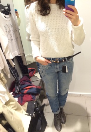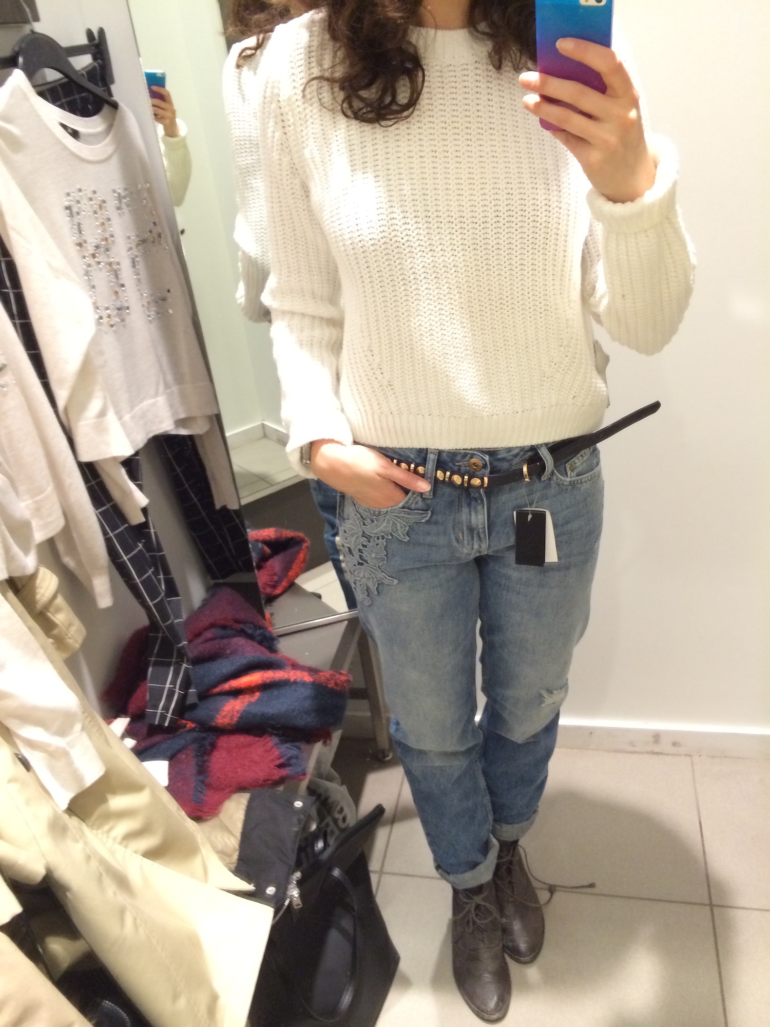 Look 2: gros morceau de robot pour le tricot blanc simple et court mais c’est moins gagnant pour moi au niveau de ce jeans boyfriend… mais je n’ai pas dit mon dernier mot et un jour je trouverai le mien!