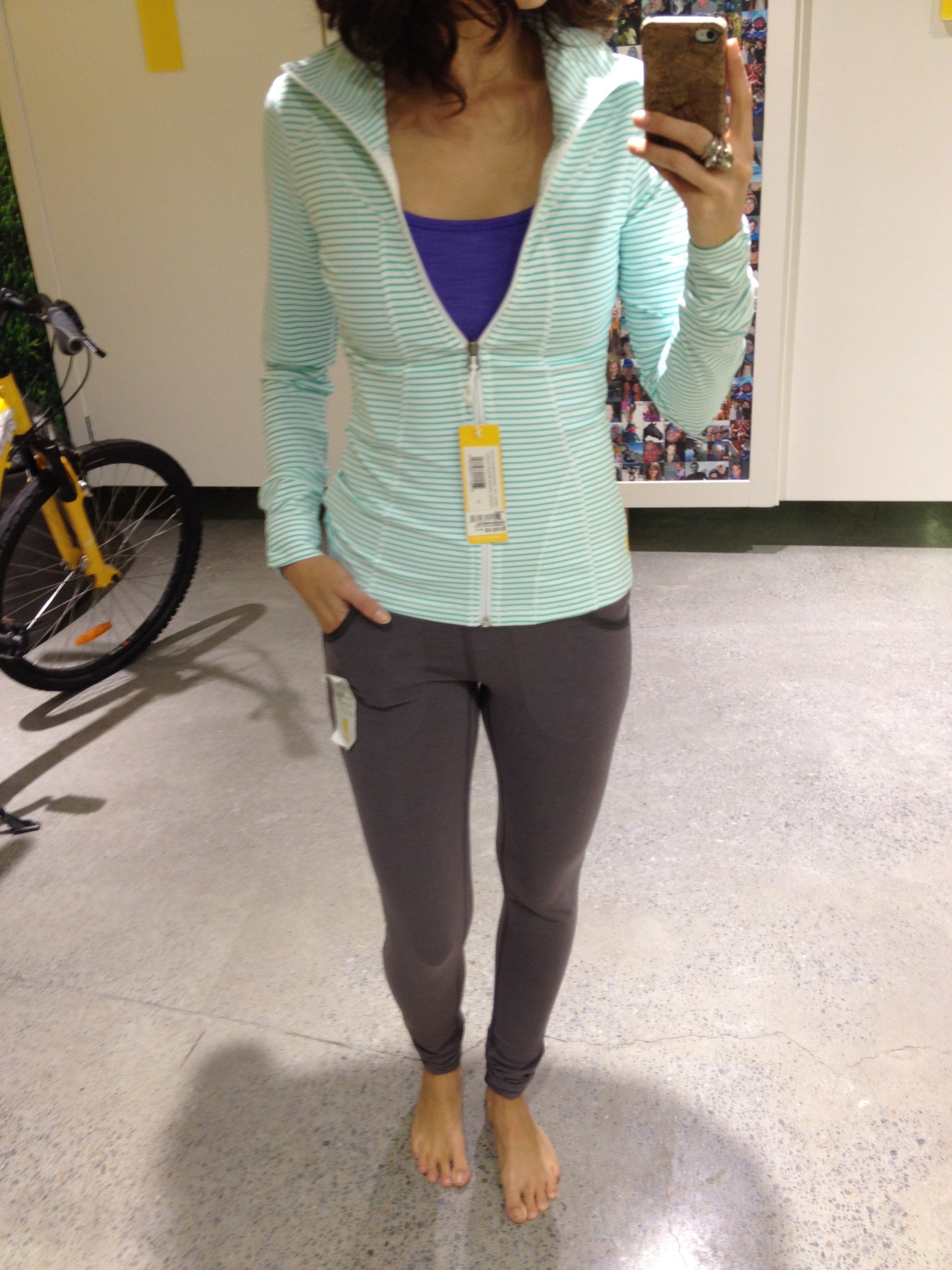 Je ne fais pas souvent des cabines sur les vêtements de sport alors je me reprends en grand avec le compte-rendu d’une visite à l’Atelier Lolë de la rue St-Denis. Je dis sport mais j’inclus dans le terme les vêtements de yoga, les vêtementscasual pour passer des dimanches confortables et les morceaux d’hiver soldés comme les chauds manteaux (j’en ai d’ailleurs un qui me tient au chaud à tous les jours) et finalement les maillots de bain que j’ai eu le plaisir de découvrir :)