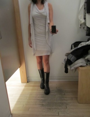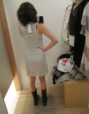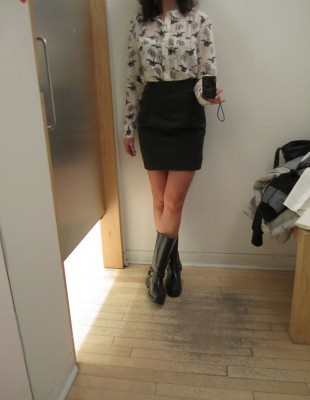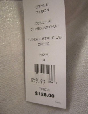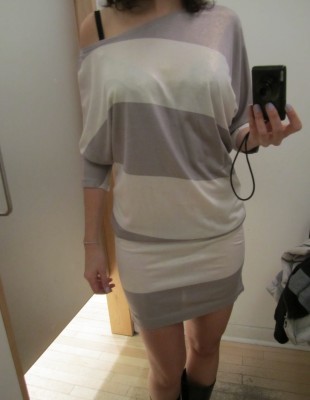 Mes préférés : la robe à rayures mauve et marine à 40 $ (qui fait étonnement bien pour une robe moulante) et la chemise oiseau à 30 $.