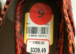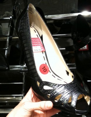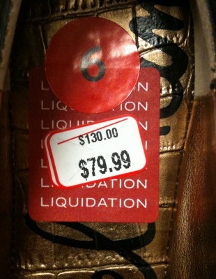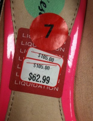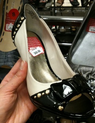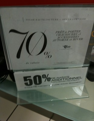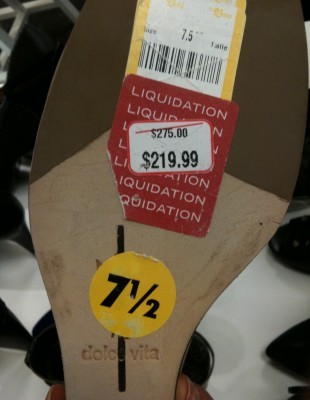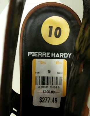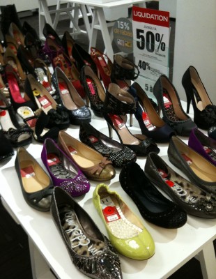 À ne pas oublier de visiter, la portion de chaussures haute-couture à 50 % de rabais supplémentaire qui se trouve justement à côté des vêtements soldés haute-couture et non dans la section des chaussures traditionnelles.