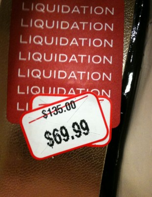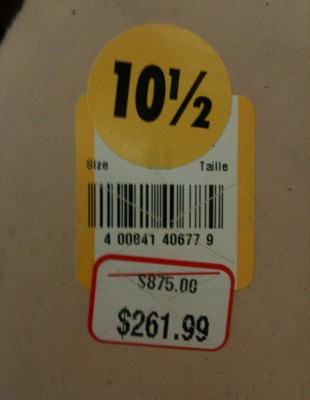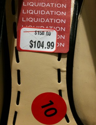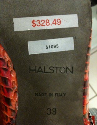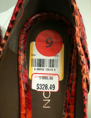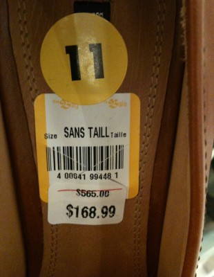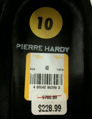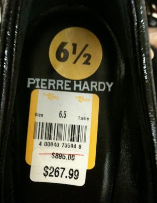 À ne pas oublier de visiter, la portion de chaussures haute-couture à 50 % de rabais supplémentaire qui se trouve justement à côté des vêtements soldés haute-couture et non dans la section des chaussures traditionnelles.