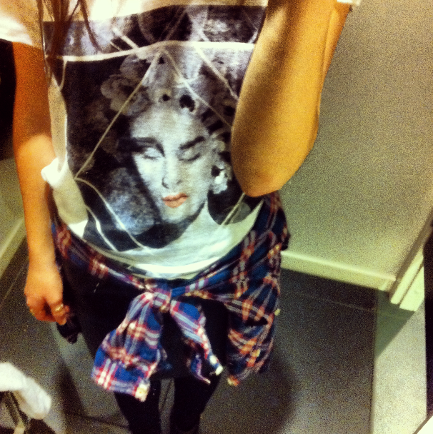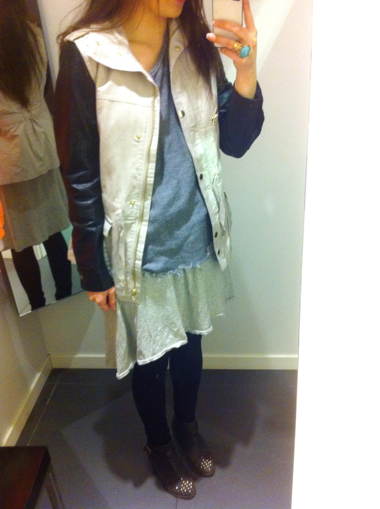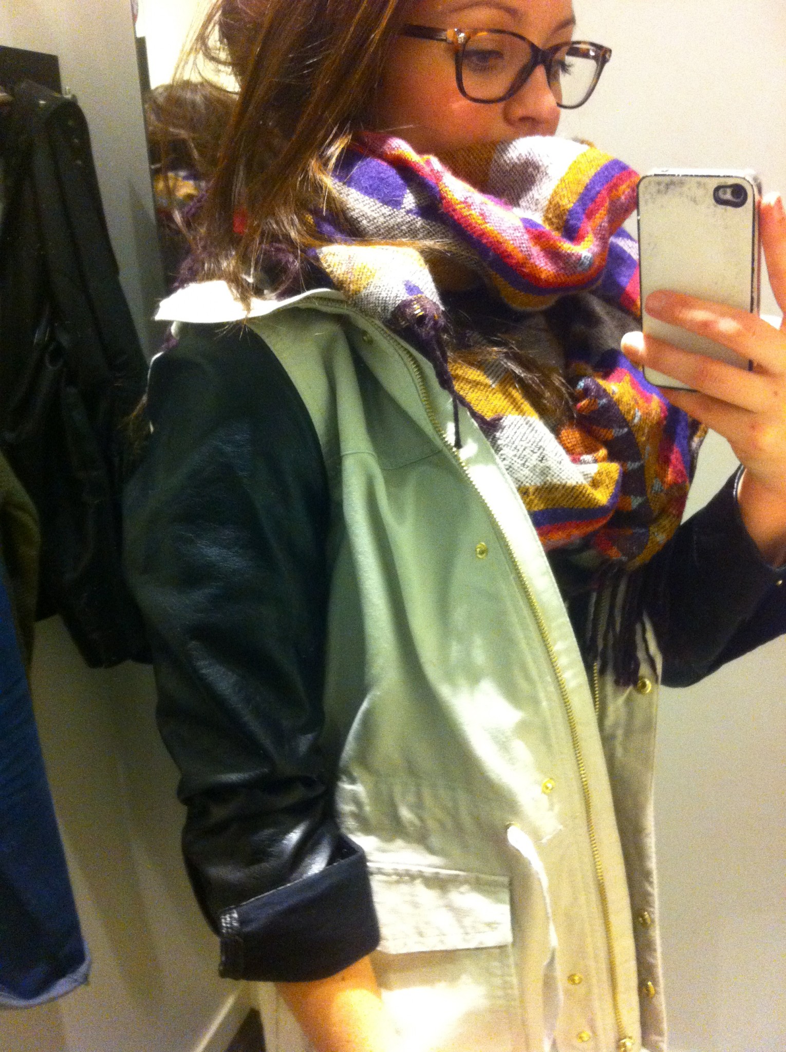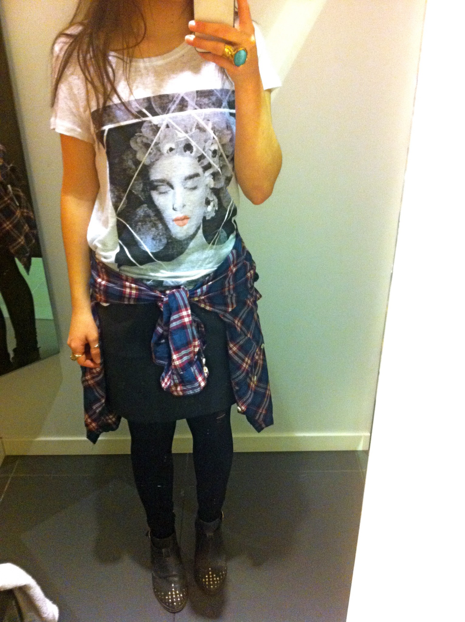 Au bout du compte, j’aurais tout acheté. Or, mon budget de shopaholic pauvre m’a raisonnée et j’ai fini ma mission H&M avec le manteau (un incontournable pour les prochaines aventures), la chemise (question de combler mes racines « bucheronnes »), le t-shirt de Lennon et le petit froc de jeans.