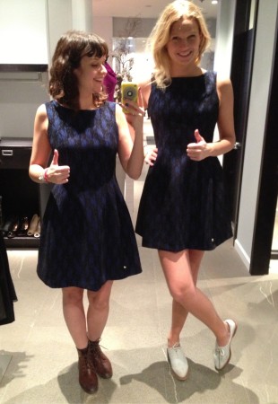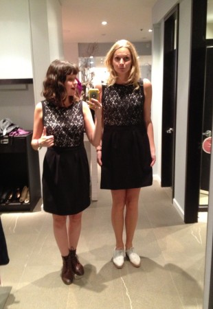 Séance d’essayage massive chez Jacob la semaine dernière, avec Mélodie de mode34b pour joindre l’utile à l’agréable :) Je pense qu’on a du essayer la moitié des robes en magasin alors voici votre petit lèche-vitrine de robes de Noël chez Jacob! C’était assez cocasse d’essayer les mêmes robes et de comparer le résultat sur nos 2 corps complètement différents. Voyez “who wore it best” pour chacune des robes… notre binette en dit long. Comprenez aussi pourquoi je ne me prends pas la tête en photo d’habitude, surtout pas après avoir dîné chez Reuben’s et mangé du gâteau au fromage.