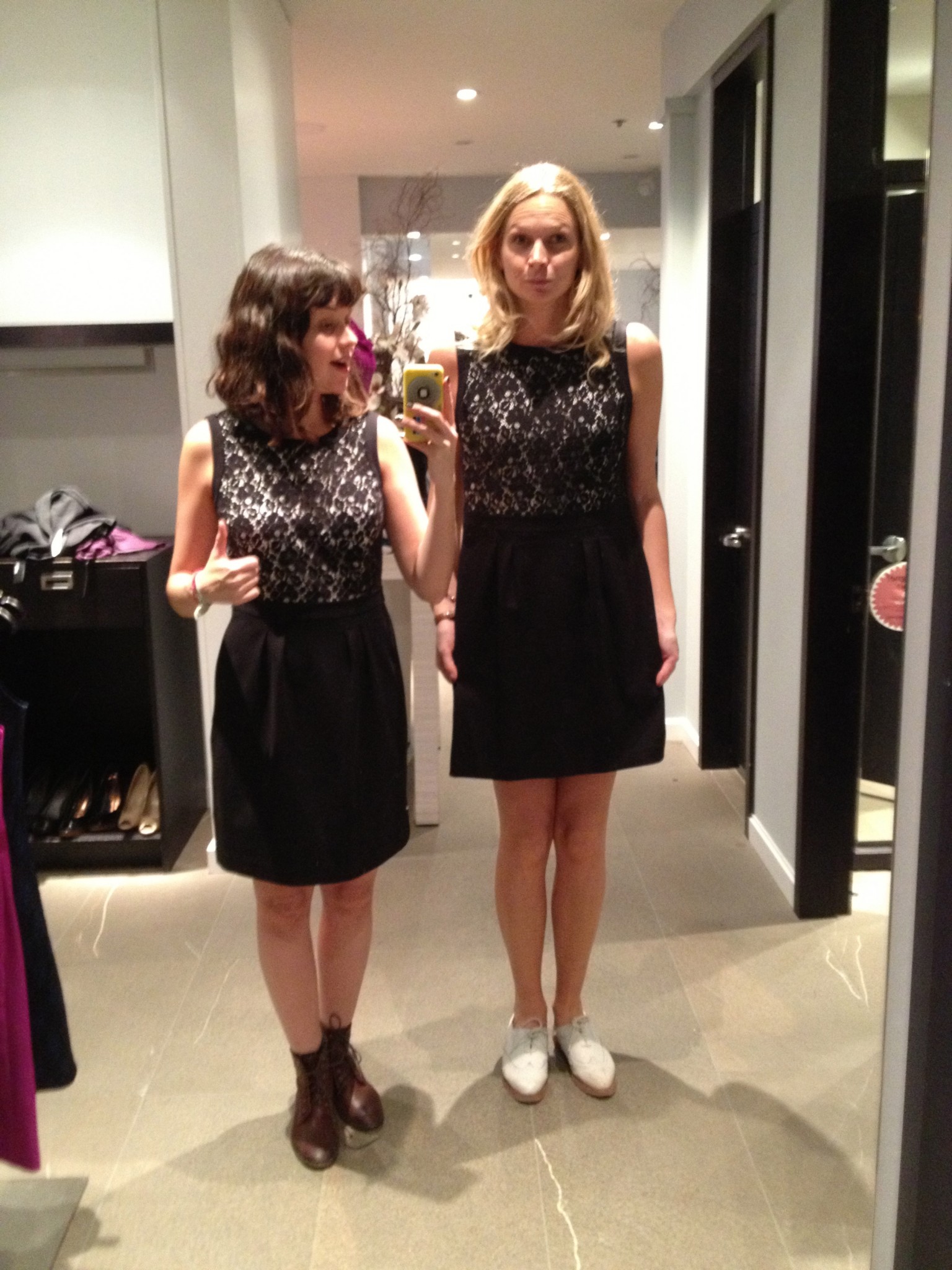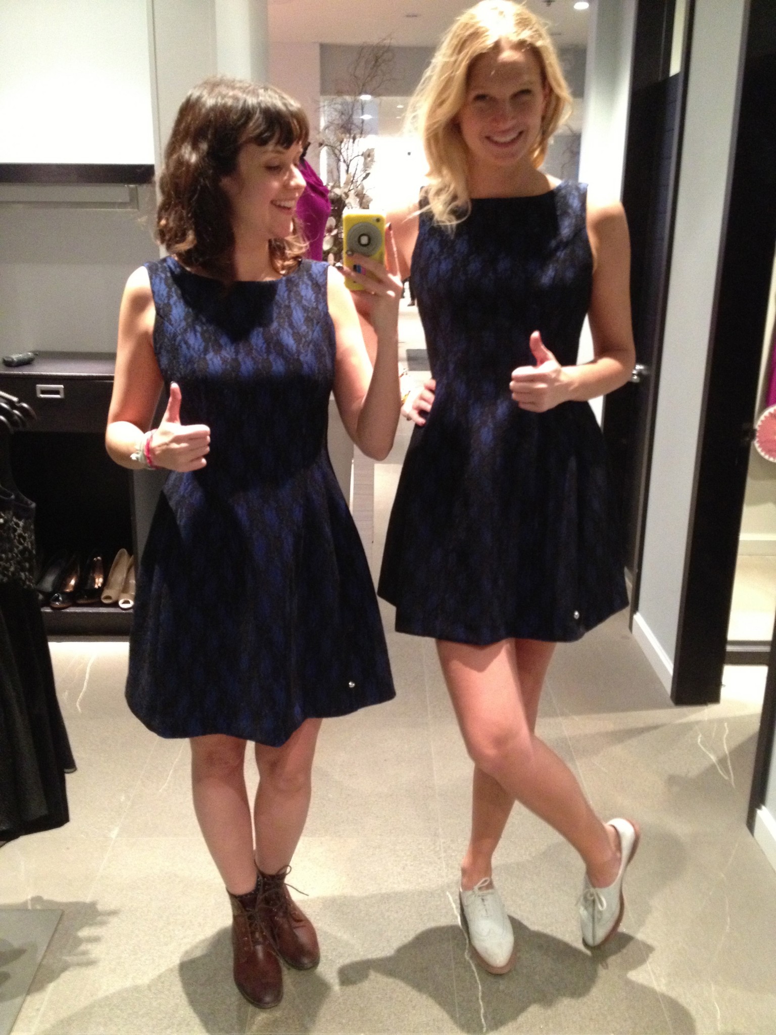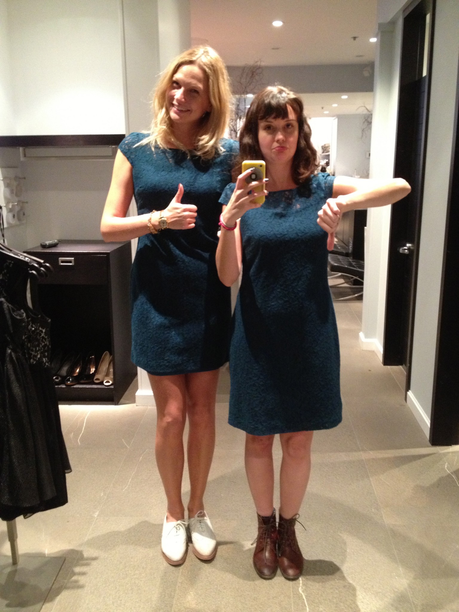 Séance d’essayage massive chez Jacob la semaine dernière, avec Mélodie de mode34b pour joindre l’utile à l’agréable :) Je pense qu’on a du essayer la moitié des robes en magasin alors voici votre petit lèche-vitrine de robes de Noël chez Jacob! C’était assez cocasse d’essayer les mêmes robes et de comparer le résultat sur nos 2 corps complètement différents. Voyez “who wore it best” pour chacune des robes… notre binette en dit long. Comprenez aussi pourquoi je ne me prends pas la tête en photo d’habitude, surtout pas après avoir dîné chez Reuben’s et mangé du gâteau au fromage.