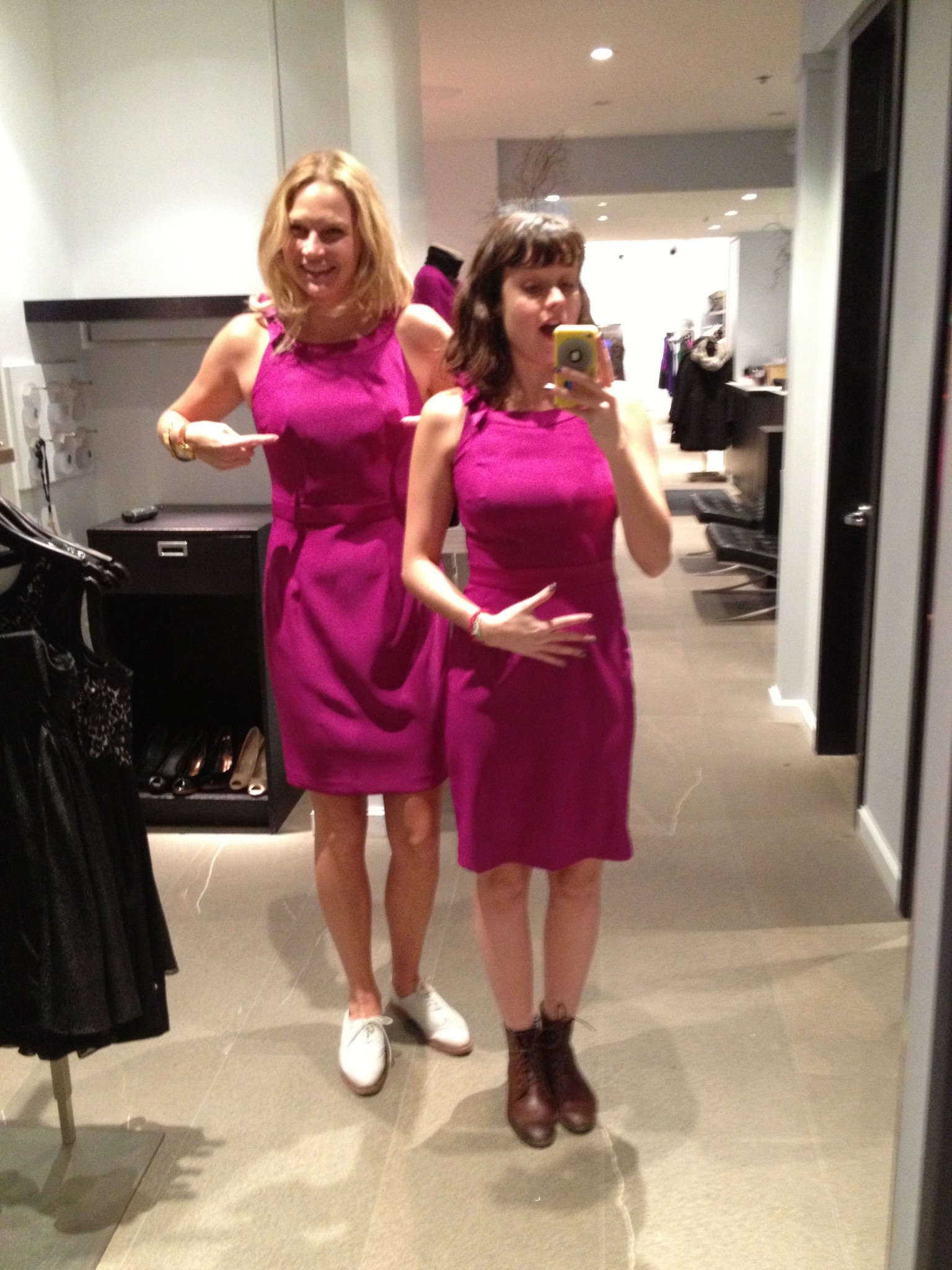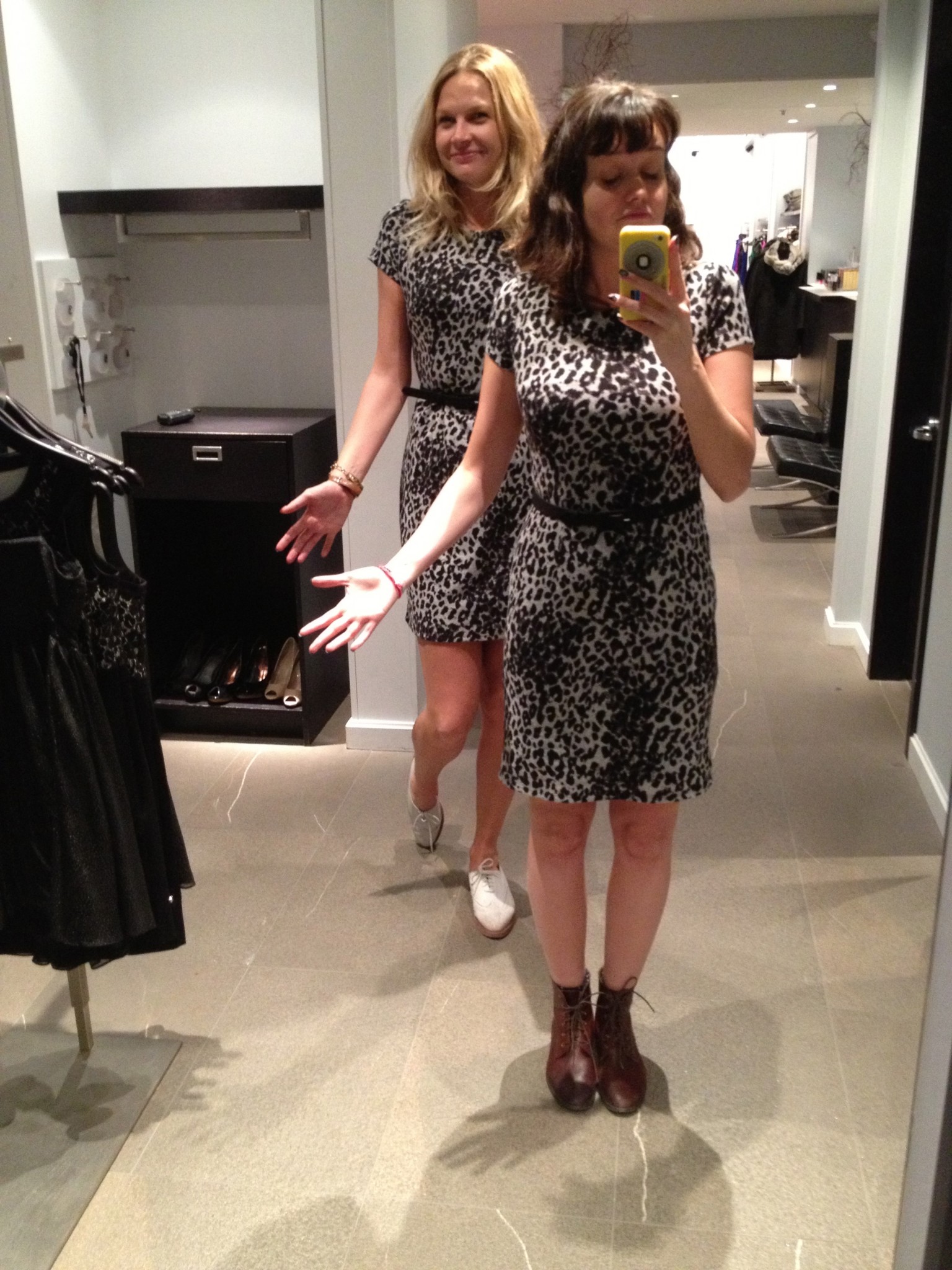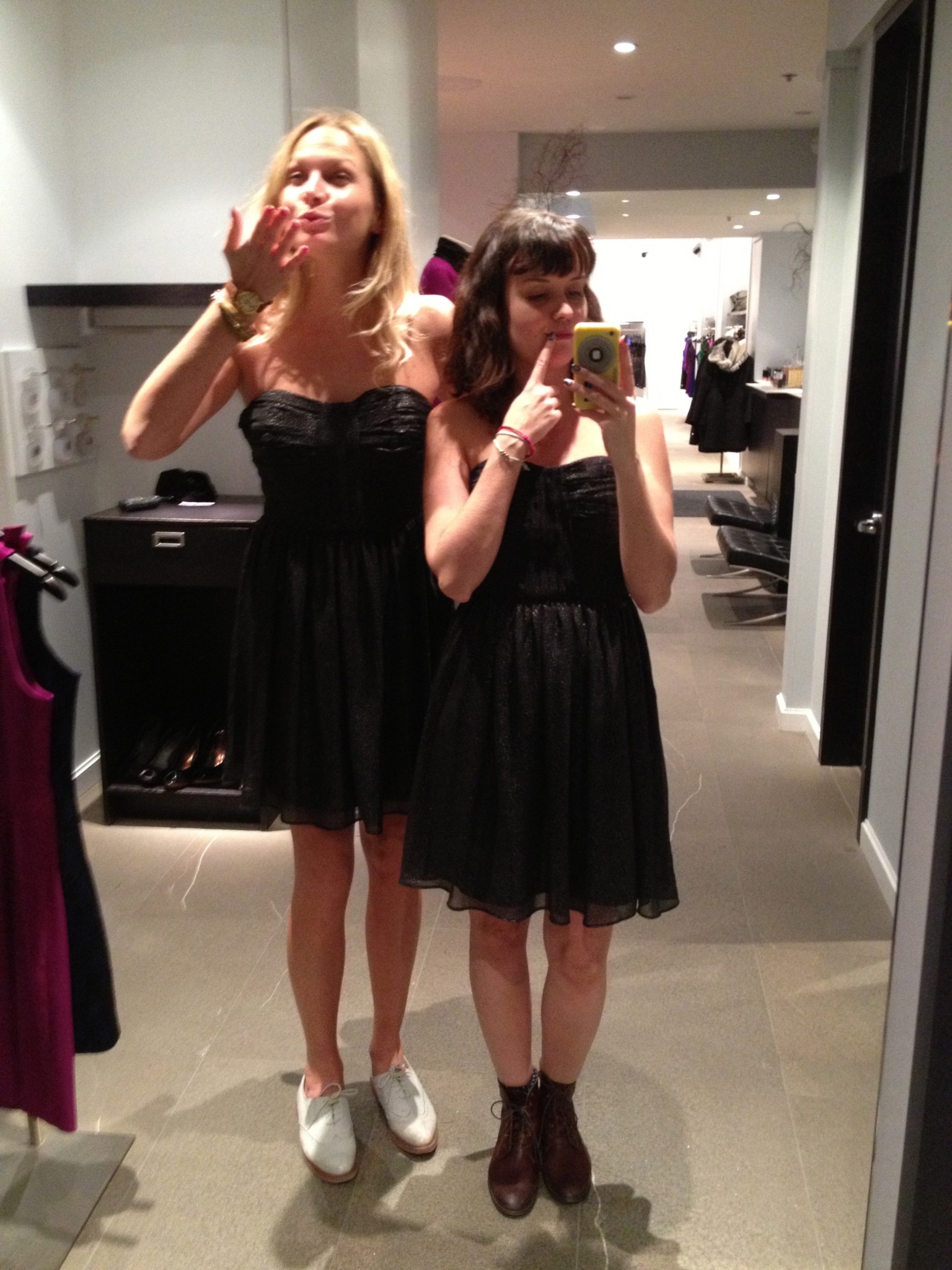 Séance d’essayage massive chez Jacob la semaine dernière, avec Mélodie de mode34b pour joindre l’utile à l’agréable :) Je pense qu’on a du essayer la moitié des robes en magasin alors voici votre petit lèche-vitrine de robes de Noël chez Jacob! C’était assez cocasse d’essayer les mêmes robes et de comparer le résultat sur nos 2 corps complètement différents. Voyez “who wore it best” pour chacune des robes… notre binette en dit long. Comprenez aussi pourquoi je ne me prends pas la tête en photo d’habitude, surtout pas après avoir dîné chez Reuben’s et mangé du gâteau au fromage.