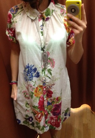 1) Mon morceau préféré de la boutique : cette robe-chemisier fleurie signée Simon Chang soldée a 129 $. (je l’aurais aimé encore plus sans la petite ceinture coulissante au dos)