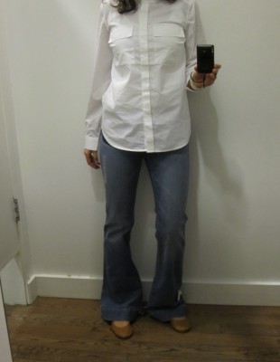 – les jeans boyfriend à jambes larges (je ne l’aurais probablement pas appelé boyfriend mais plutôt 70s…) avec ses fausses poches foncées à l’avant (79,50 $)