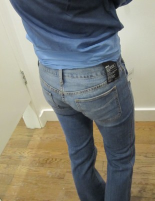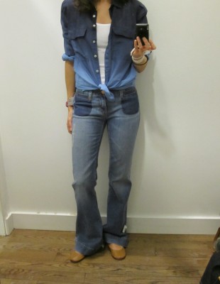 – les jeans boyfriend à jambes larges (je ne l’aurais probablement pas appelé boyfriend mais plutôt 70s…) avec ses fausses poches foncées à l’avant (79,50 $)