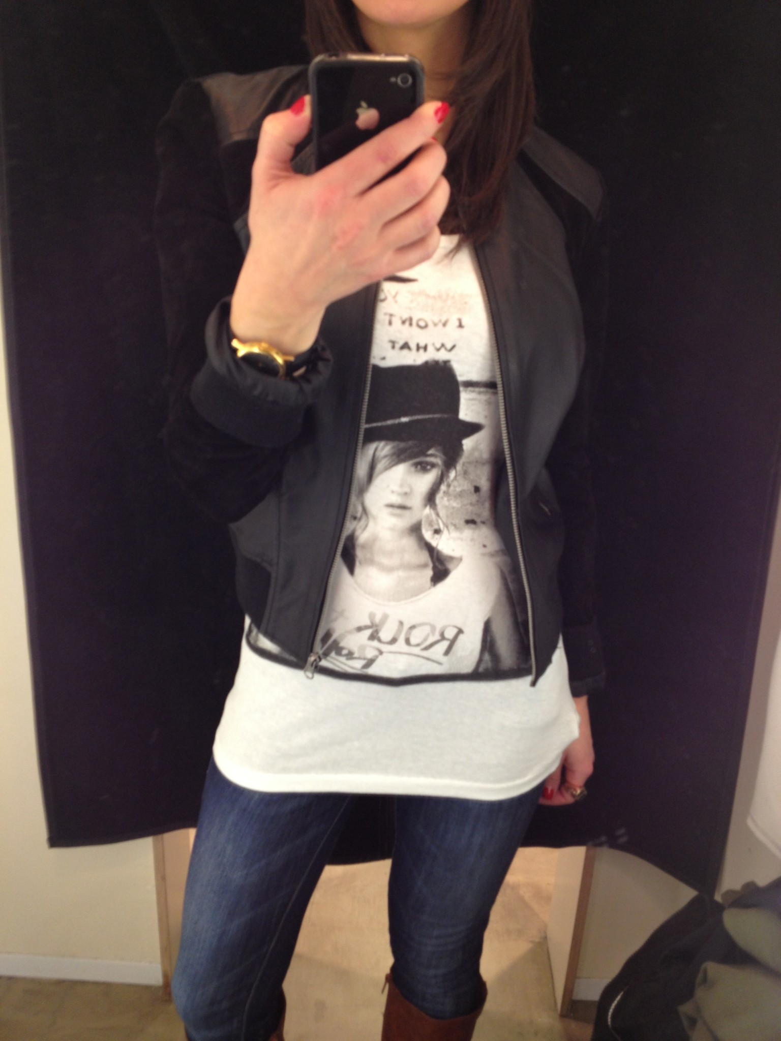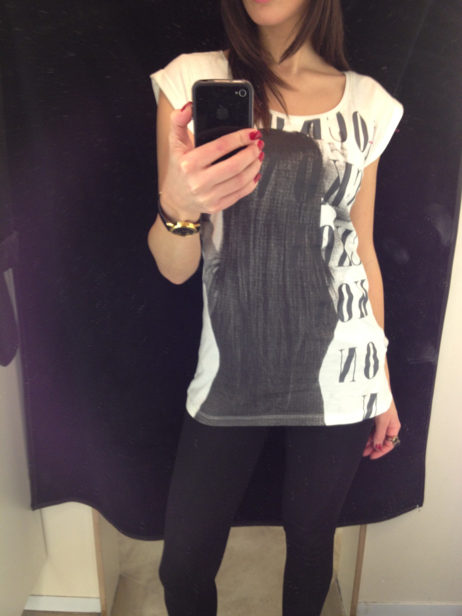 J’ai eu un coup de coeur pour le t-shirt noir et blanc avec une photo de fille sur le devant et le superbe blouson de cuir noir. Et j’ai bien aimé tous leurs t-shirts imprimés noir et blanc à prix très abordables et le veston noir avec zips argent sur les poches du devant.