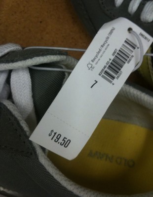 Et mini tour chez Old Navy pour constater que les petits sacs de plage sont arrivés (vus au lancement de la collection printemps) et qu’il y a de sympas petits souliers gris et jaune à 20 $.