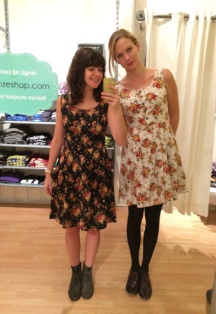 Le premier constat en arrivant chez Onze c’est qu’il y a des robes partout. Deuxième constat, on a le goût de toutes les essayer et c’est à peu près ce à quoi on s’est adonnées vendredi dernier pour l’avant-midi. On a eu bien du fun à comparer les marques et les coupes et surtout les distinctions entre grande et petite.