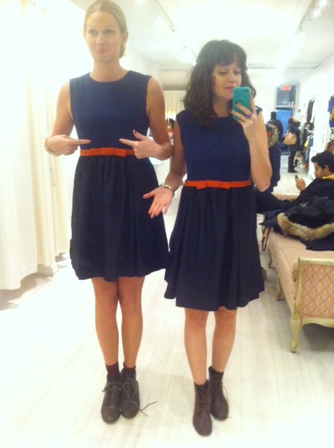 Mélodie et moi avions beaucoup de festivités de Noël communes cette année alors ça tombe bien car on a souvent une petite demi-heure de libre pour aller faire une cabine BFF. Pour la dernière cabine BFF de l’année, on a décidé d’aller chez 1861 sur St-Laurent. C’est le repère parfait pour essayer des ensembles girly. Prenez note que vous devrez parfois essayer une taille de plus qu’à l’habitude en raison des nombreuses importations d’Asie de petite taille.