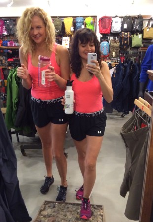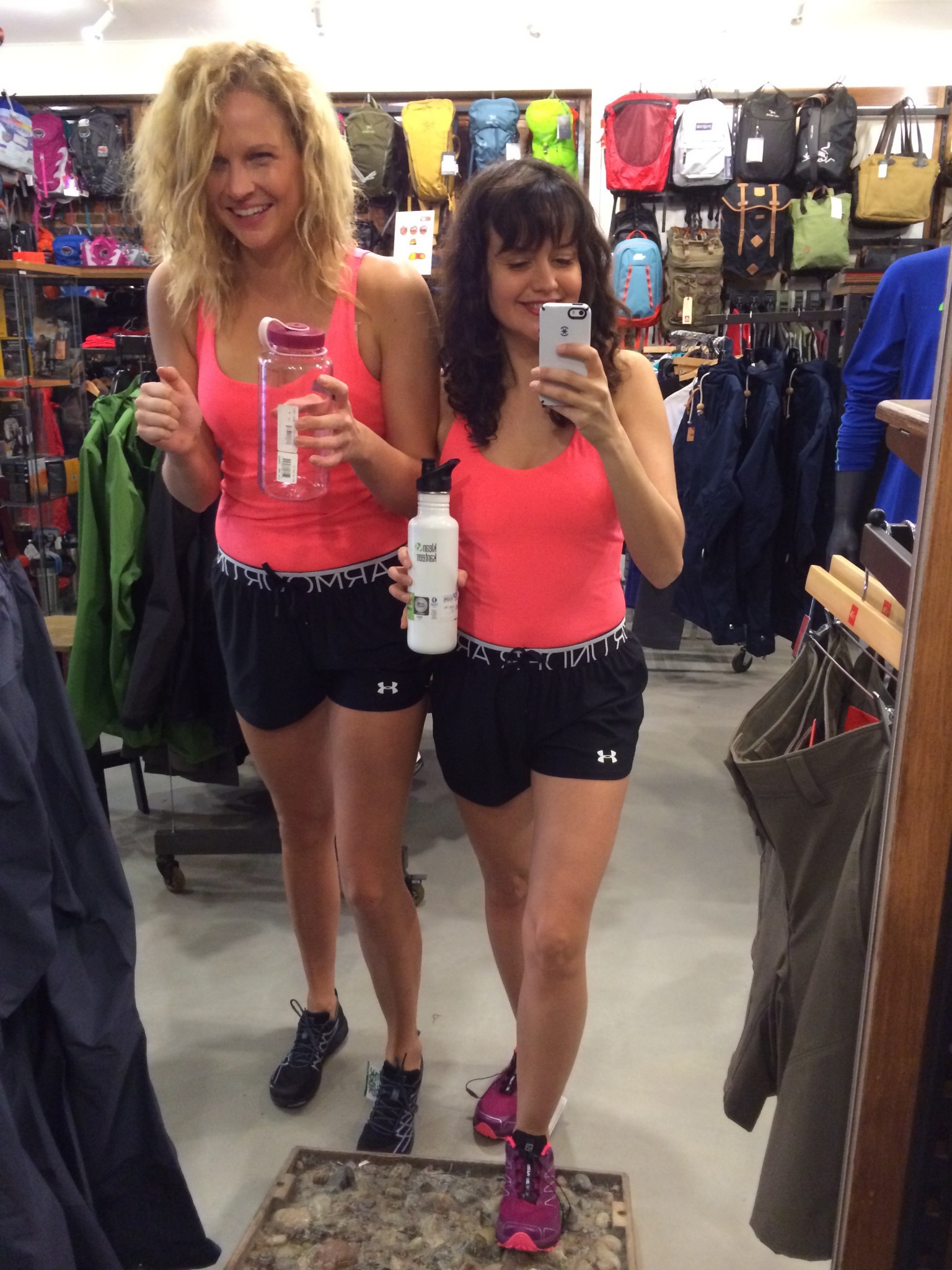 Mélodie et moi avons décidé de sortir des sentiers battus et de faire un essayage de vêtements de sports chez altitude-sports.com. On a eu bien du plaisir (lire : j’ai ri de Mélo qui doit s’habiller dans le département pour hommes à cause de ses grands bras et ses grandes jambes) et on s’est aussi rendues compte qu’on avait besoin de se remettre en forme après un hiver plus que sédentaire. Voici les looks de sportives qui nous ont convaincu de nous inscrire a Happy Fitness.
