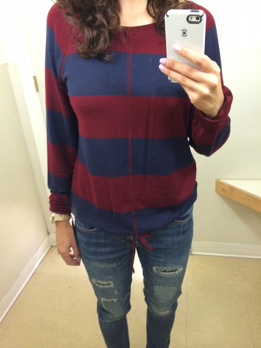 Finalement, je dois dire que c’est la première fois que des jeans Joe Fresh me font aussi bien. Je ne sais pas si c’est moi qui a changé ou eux mais le résultat est assez concluant! J’ai beaucoup aimé le skinny troué (et rapiécé) mais la palme revient au jeans boyfriend qui est super bien coupé et qui me fait un joli popotin au petit prix de 29$. A essayer!
