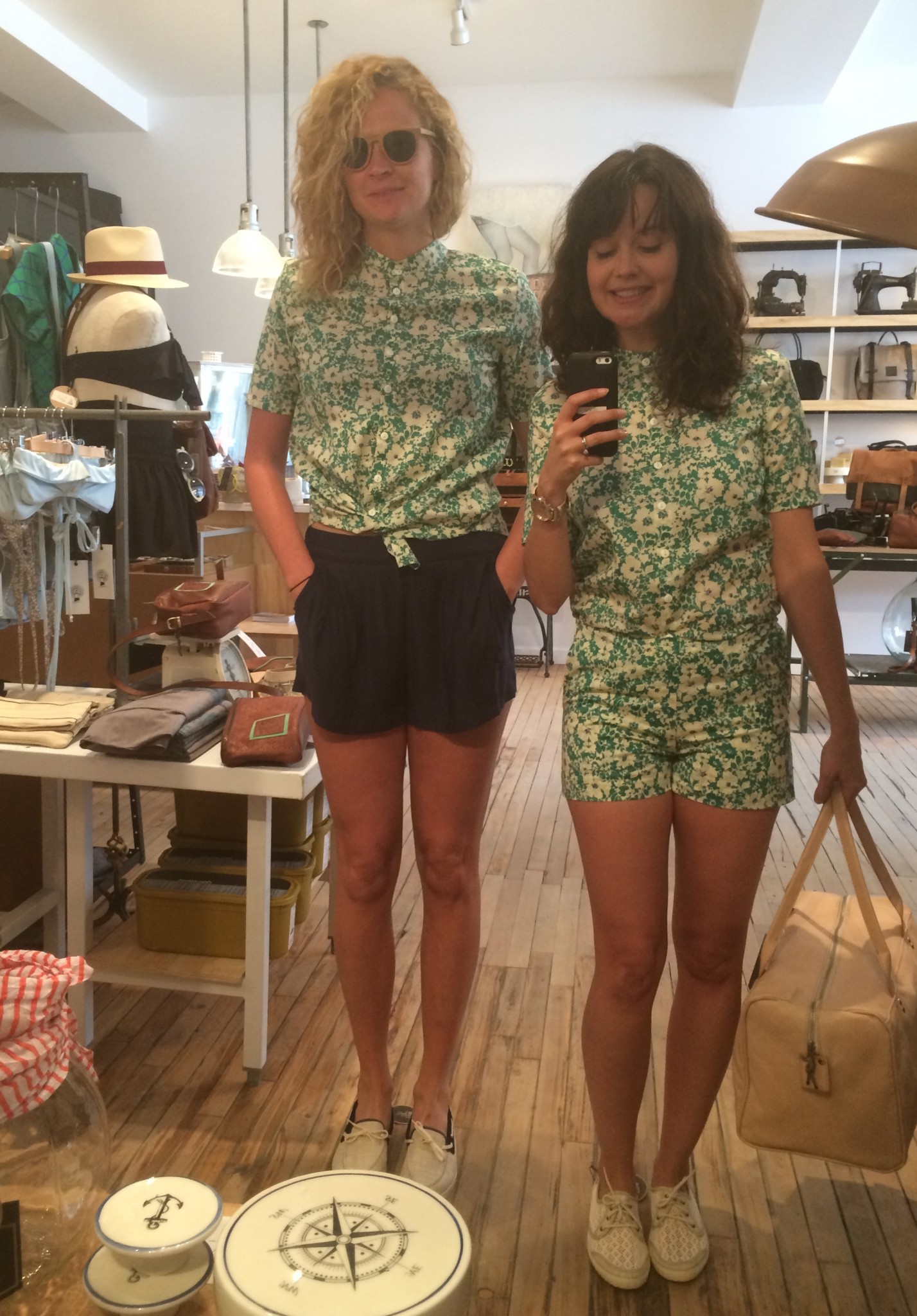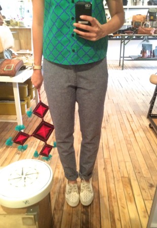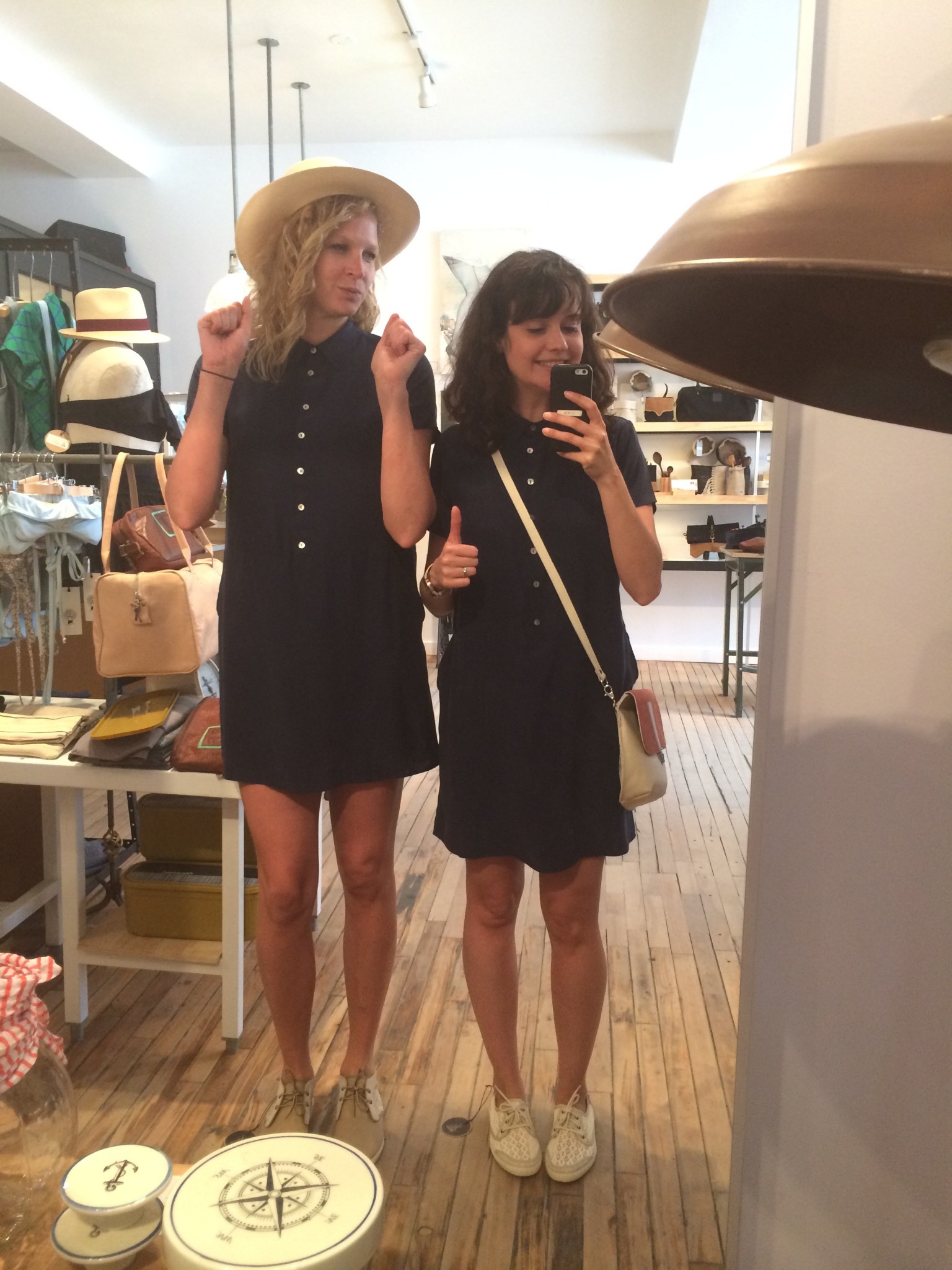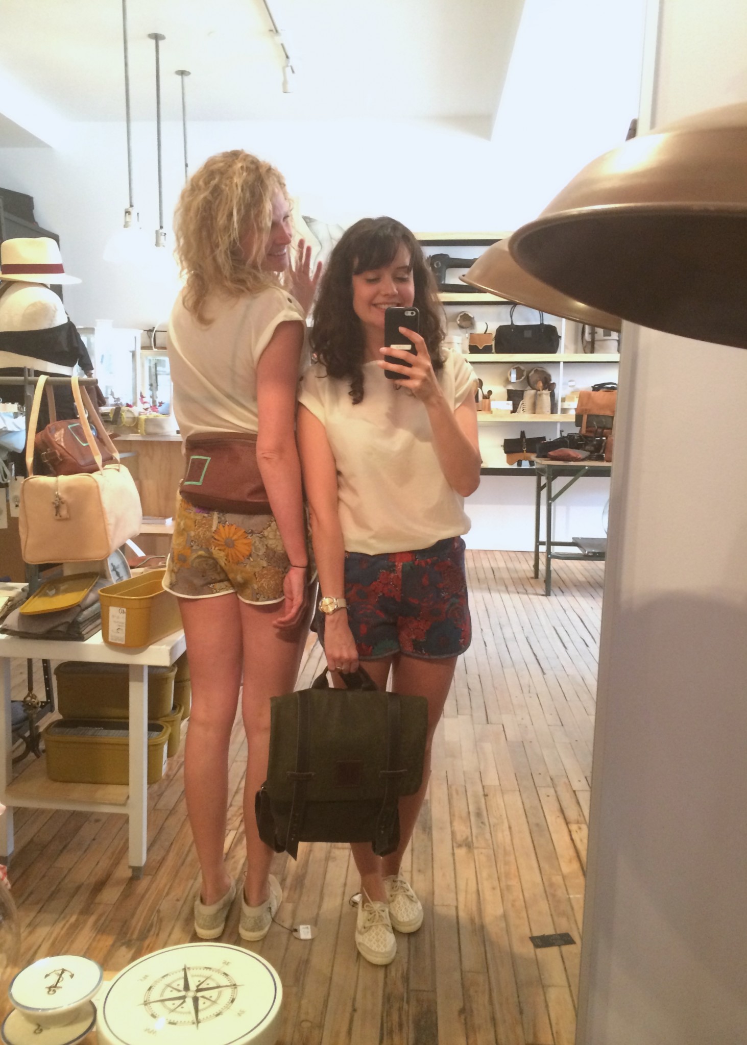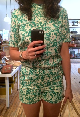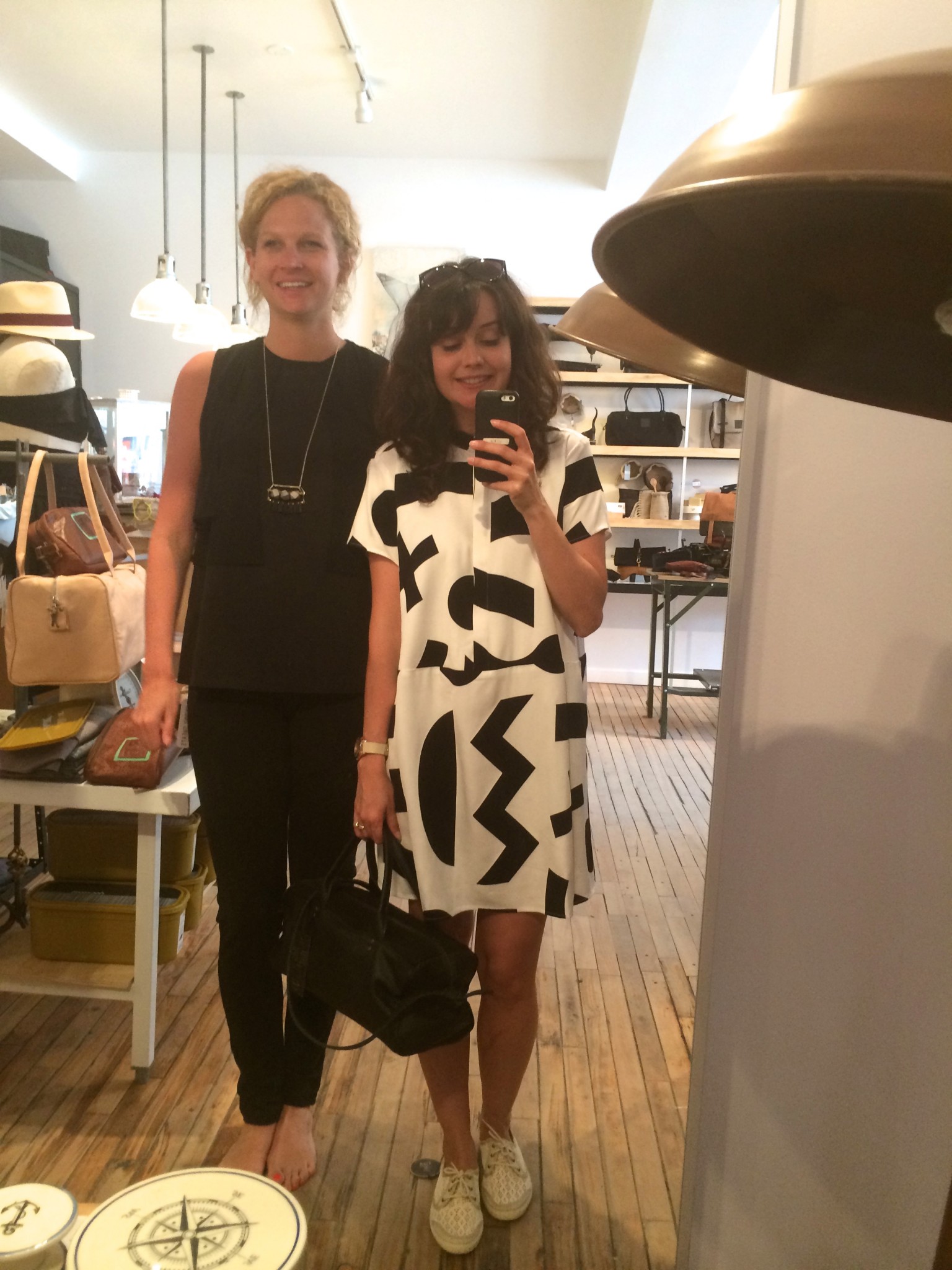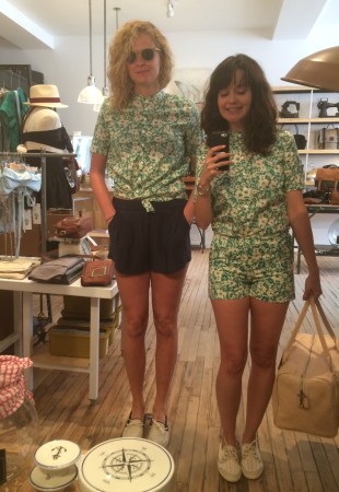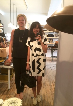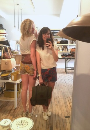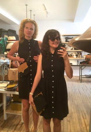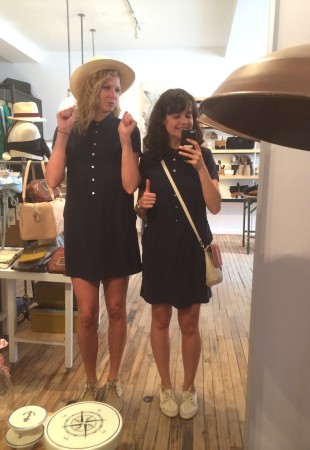 Ma BFF et moi avons été invitées à essayer les collections d’été chez Lowell. Fans de la boutique et de Rachel f, vous comprendrez qu’on n’a pas pu refuser. Ça faisait longtemps que je n’avais pas essayé autant de morceaux concluants, c’est probablement parce que les designers et les pièces sont choisies avec soin. J’ai même un nouveau coup de coeur pour une designer de Brooklyn, Ella Van Dusen qui signe ses vêtements sous le nom de Dusen Dusen. Elle crée ses propres imprimés, elle adore le noir et blanc, les couleurs vives et elle créé des vêtements qui ont une super coupe. Pour les curieuses qui veulent voir ses collections, cliquez ici. De retour à la cabine, je vous présente les looks un par un : 1) la salopette en soie brut de Dusen Dusen à 242$ : bien coupée pour avantager la silhouette et super confo (le seul hic, c’est le nettoyage à sec pour la soie brut donc moins pratique pour la vie de tous les jours). Elle est trop courte pour les grandes comme Mélo par contre. Je portais aussi un haut Dusen Dusen à 95$ et Mélo un crop t-shirt gris à 60$. On a toutes les 2 choisies un accessoire rachel f. pour accompagner la salopette. Mélo, les bracelets à 20$ et moi les boucles d’oreilles à 28$ qui me donnaient un petit look 80s. 2) ensuite autre marque à decouvrir : atelier delphine qui m’a presque donné le goût de m’acheter un petit kit coordonné : chemise à 135$ et shorts 125$. J’ai accompagné mon ensemble d’un super sac de week-end en cuir recyclé rachel f. à 395$. Pour Mélodie, les shorts étaient trop petites mais à la fin de la journée elle n’a pas pu résister au print de la chemise. 3) les shorts de l’atelier delphine à en 2 coloris. Elles faisant comme un gant à Mélodie mais elles avaient plutôt l’air d’un pyjama sur moi. On les a combiné à un haut atelier b. à 97$, et un sac à la taille rachel f. pour Mélo (190$) et le classique sac à dos rachel f. dans un mélange de cuir recyclé et de toile pour moi. (195$) 4) la robe polo marine en soie de Dusen Dusen, légère comme l’air et bien coupée à 288$. Pour Mélo, la taille était un peu trop haute et la robe un peu courte. Décidemment, Dusen Dusen, c’est fait pour la fille normale de 5’6” :) Mon sac bandoulière est un rachel f. à 150$. 5) vous n’allez pas être surprise de la marque de la robe suivante taillée dans la même soie brut que la salopette Dusen Dusen pour 195$. Elle m’allait comme un gant alors que Mélo se sentait un peu serrée de la cage thoracique. On a toutes les deux choisies un sac noir et tan de rachel f. pour l’accompagner. (Mélo : 120$, moi : 210$) 6) J’ai ri de Mélo quand elle a choisi son haut d’infirmière beige, c’est bien une chose sur laquelle on ne s’entend pas : le beige. Sans le savoir, j’ai encore choisi un morceau DD (la chemise à 125$) et on a toutes les 2 bien aimé le pantalon chino de the west is dead à 165$ . Et Mélo a ri de moi avec mon ”capteur de rêve mexicain” (30$) de qui ne je n’ai pas réussi à me séparer. 7) Mélo a beaucoup aimé le haut norwegian wood avec son impression de petite veste intégrée (110$) et moi je suis tombée en amour avec cette robe Dusen Dusen qui ne m’a pas quitté depuis… j’étais tellement excitée que j’ai perdu le prix mais je crois qu’elle était 268$ Merci à la boutique Lowell de nous avoir accueillies si gentiment :) La boutique Lowell se trouve au 5364 Saint-Laurent à Montréal.