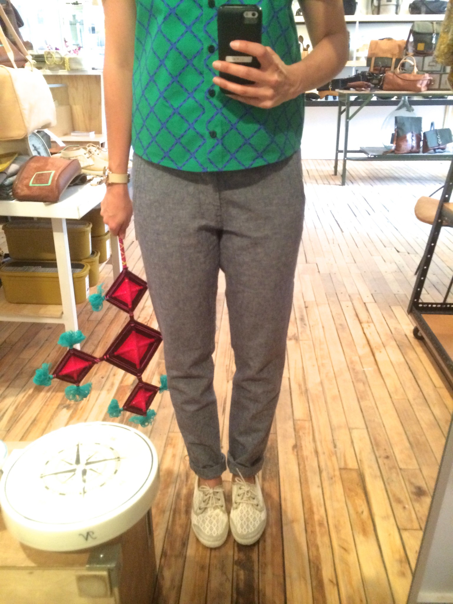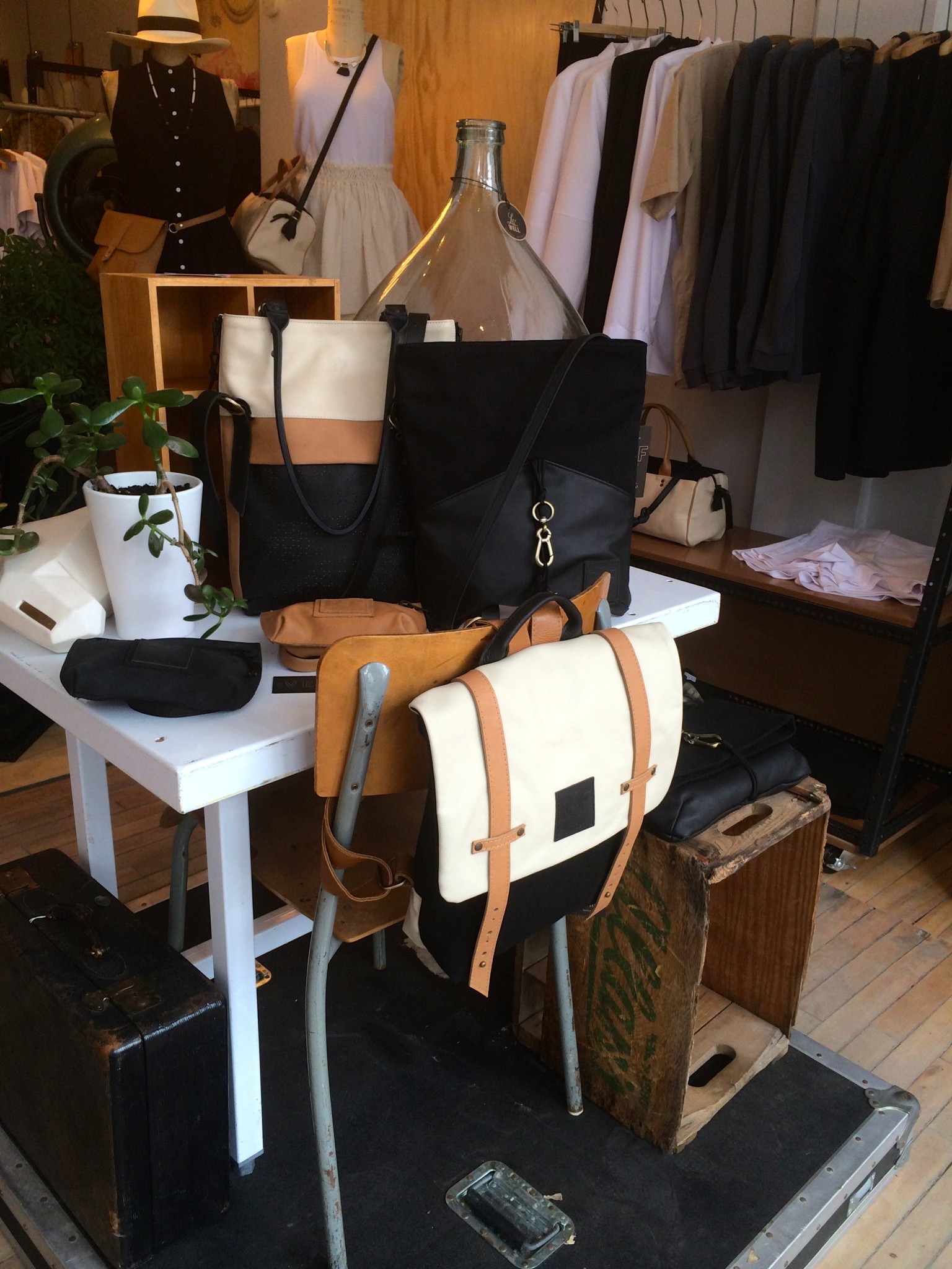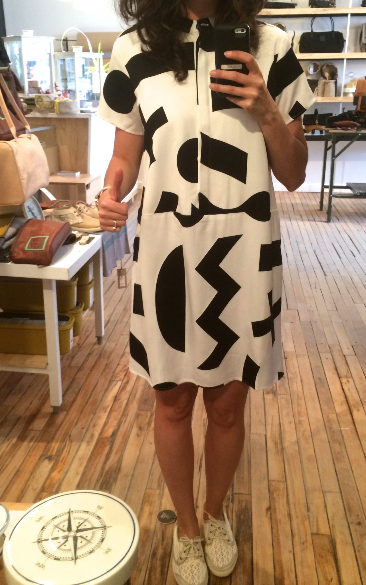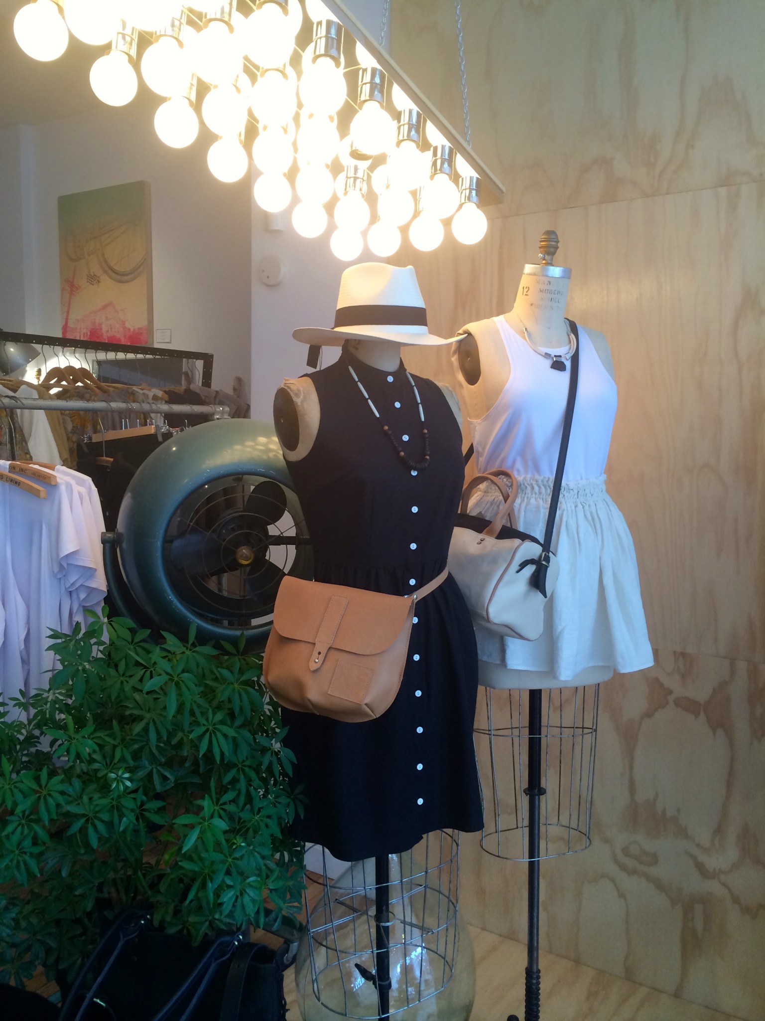 Ma BFF et moi avons été invitées à essayer les collections d’été chez Lowell. Fans de la boutique et de Rachel f, vous comprendrez qu’on n’a pas pu refuser. Ça faisait longtemps que je n’avais pas essayé autant de morceaux concluants, c’est probablement parce que les designers et les pièces sont choisies avec soin. J’ai même un nouveau coup de coeur pour une designer de Brooklyn, Ella Van Dusen qui signe ses vêtements sous le nom de Dusen Dusen. Elle crée ses propres imprimés, elle adore le noir et blanc, les couleurs vives et elle créé des vêtements qui ont une super coupe. Pour les curieuses qui veulent voir ses collections, cliquez ici. De retour à la cabine, je vous présente les looks un par un : 1) la salopette en soie brut de Dusen Dusen à 242$ : bien coupée pour avantager la silhouette et super confo (le seul hic, c’est le nettoyage à sec pour la soie brut donc moins pratique pour la vie de tous les jours). Elle est trop courte pour les grandes comme Mélo par contre. Je portais aussi un haut Dusen Dusen à 95$ et Mélo un crop t-shirt gris à 60$. On a toutes les 2 choisies un accessoire rachel f. pour accompagner la salopette. Mélo, les bracelets à 20$ et moi les boucles d’oreilles à 28$ qui me donnaient un petit look 80s. 2) ensuite autre marque à decouvrir : atelier delphine qui m’a presque donné le goût de m’acheter un petit kit coordonné : chemise à 135$ et shorts 125$. J’ai accompagné mon ensemble d’un super sac de week-end en cuir recyclé rachel f. à 395$. Pour Mélodie, les shorts étaient trop petites mais à la fin de la journée elle n’a pas pu résister au print de la chemise. 3) les shorts de l’atelier delphine à en 2 coloris. Elles faisant comme un gant à Mélodie mais elles avaient plutôt l’air d’un pyjama sur moi. On les a combiné à un haut atelier b. à 97$, et un sac à la taille rachel f. pour Mélo (190$) et le classique sac à dos rachel f. dans un mélange de cuir recyclé et de toile pour moi. (195$) 4) la robe polo marine en soie de Dusen Dusen, légère comme l’air et bien coupée à 288$. Pour Mélo, la taille était un peu trop haute et la robe un peu courte. Décidemment, Dusen Dusen, c’est fait pour la fille normale de 5’6” :) Mon sac bandoulière est un rachel f. à 150$. 5) vous n’allez pas être surprise de la marque de la robe suivante taillée dans la même soie brut que la salopette Dusen Dusen pour 195$. Elle m’allait comme un gant alors que Mélo se sentait un peu serrée de la cage thoracique. On a toutes les deux choisies un sac noir et tan de rachel f. pour l’accompagner. (Mélo : 120$, moi : 210$) 6) J’ai ri de Mélo quand elle a choisi son haut d’infirmière beige, c’est bien une chose sur laquelle on ne s’entend pas : le beige. Sans le savoir, j’ai encore choisi un morceau DD (la chemise à 125$) et on a toutes les 2 bien aimé le pantalon chino de the west is dead à 165$ . Et Mélo a ri de moi avec mon ”capteur de rêve mexicain” (30$) de qui ne je n’ai pas réussi à me séparer. 7) Mélo a beaucoup aimé le haut norwegian wood avec son impression de petite veste intégrée (110$) et moi je suis tombée en amour avec cette robe Dusen Dusen qui ne m’a pas quitté depuis… j’étais tellement excitée que j’ai perdu le prix mais je crois qu’elle était 268$ Merci à la boutique Lowell de nous avoir accueillies si gentiment :) La boutique Lowell se trouve au 5364 Saint-Laurent à Montréal.