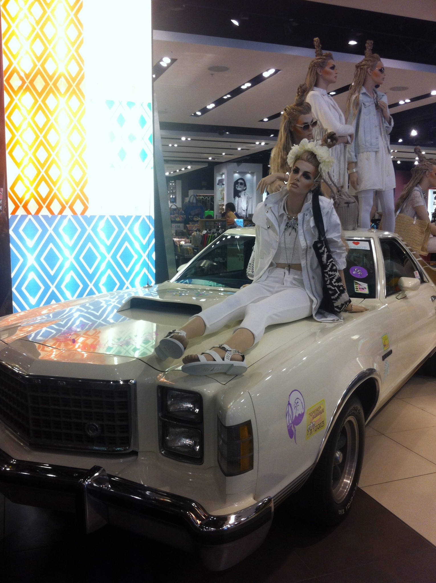 Les gens font du slalom entre les diverses sections de vêtements qu’offre la boutique Topshop. Les femmes se laissent charmer par les étoffes des collections particulières et les enfants réclament des petits gâteaux ou des yogourts glacés à leur papa. Avec ses quatre étages, ses services de restauration, de tatouage, d’esthétique, de coiffure et de bronzage, Topshop prend l’allure d’un mini centre d’achat.