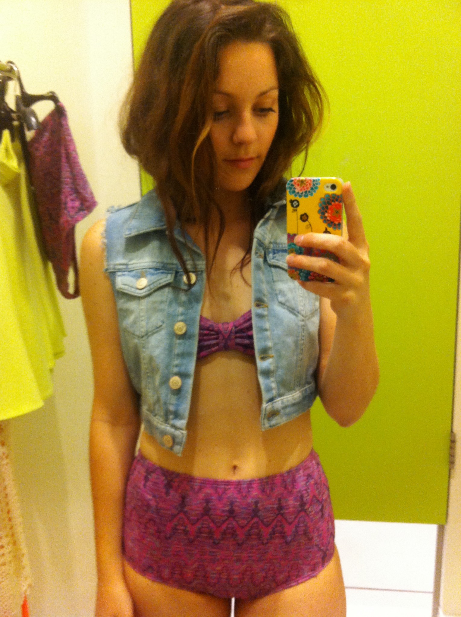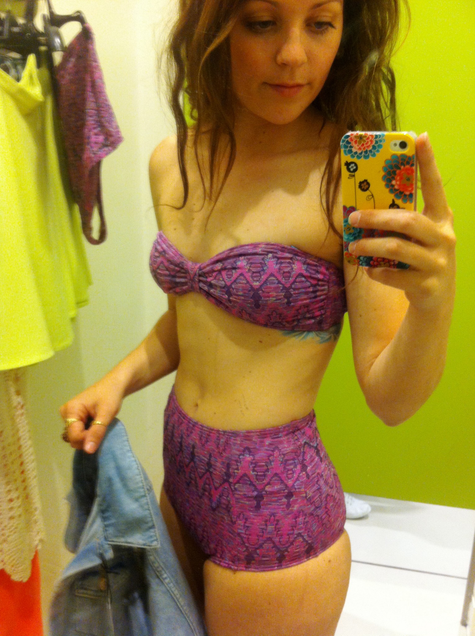 3- La grande primeur de Dans la cabine ce mois-ci est l’Opération camouflage muffin-top. J’ai donc testé un maillot de bain taille haute pour vous, chères lectrices. Le verdict s’avère positif, comme quoi j’ai adoré l’effet taille haute, bien que le haut de ce modèle est plus ou moins flatteur.