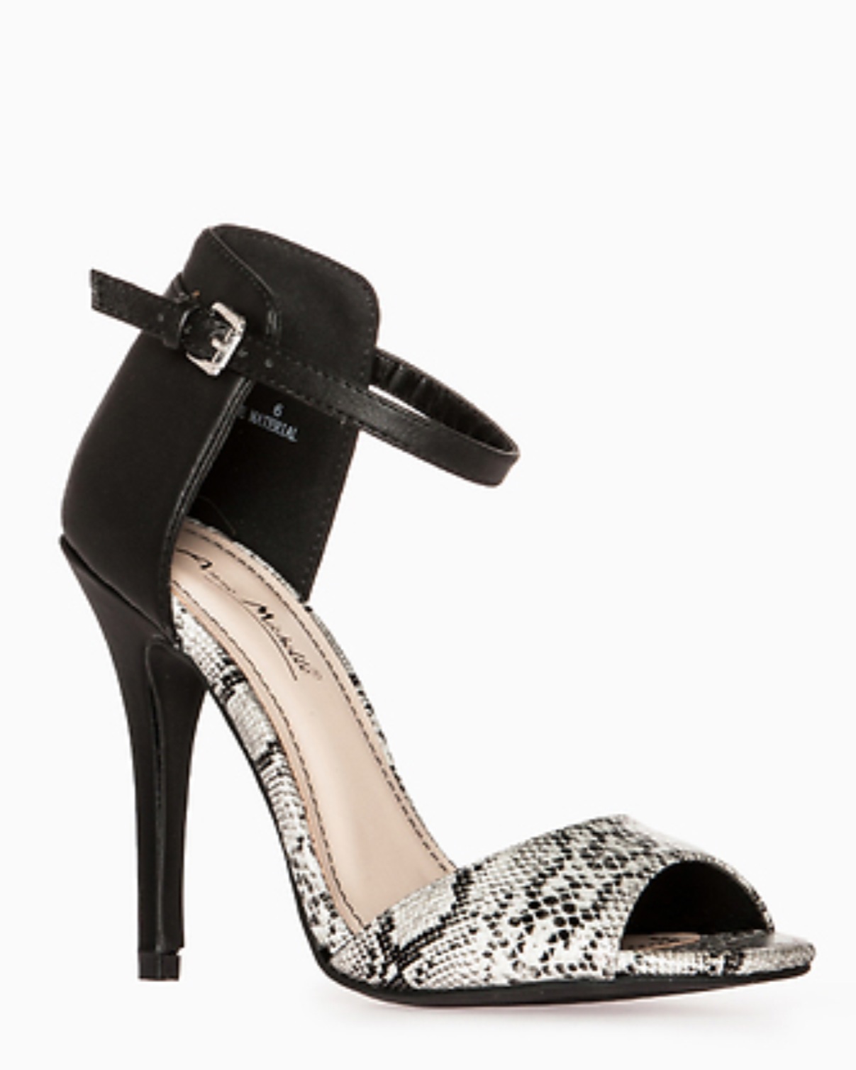 Finalement, je suis allé sur la boutique en ligne Dailylook et j’ai trouvé de beaux souliers plats avec un imprimé léopard. Je trouvais que leur forme sortait de l’ordinare. Comme dernière paire, de beaux talons hauts qui s’attachent à la cheville, encore une fois avec un motif animalier.