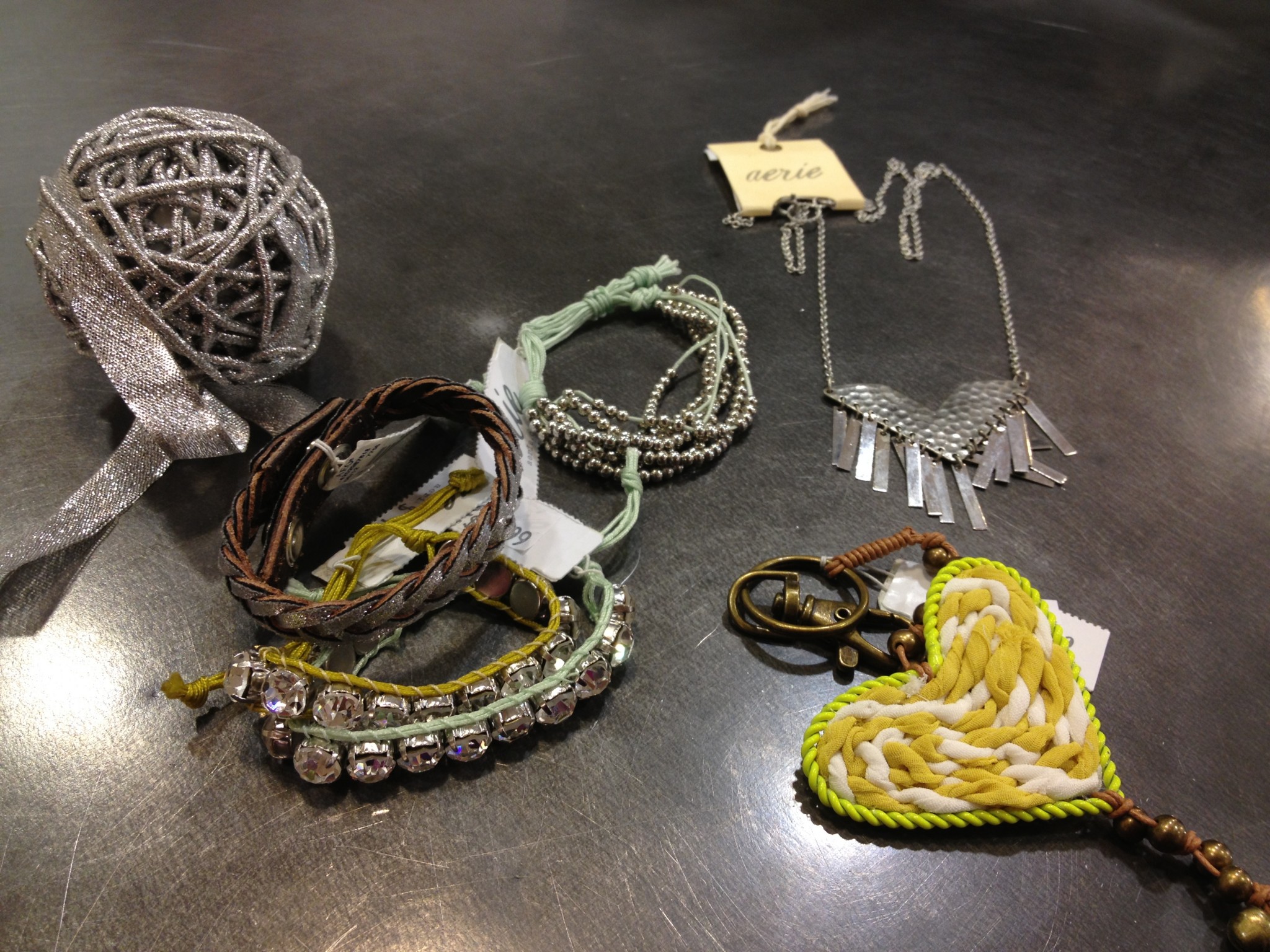 J’aime bien le 2e étage du American Eagle Outfitters pour ses soldes sur les vêtements, la lingerie et les accessoires. Cette semaine, il y a même un 40 % de rabais additionnel sur les soldes donc ça vaut la peine d’aller faire un tour. J’ai passé quelques minutes a la table des accessoires pour faire mon choix et le voici.