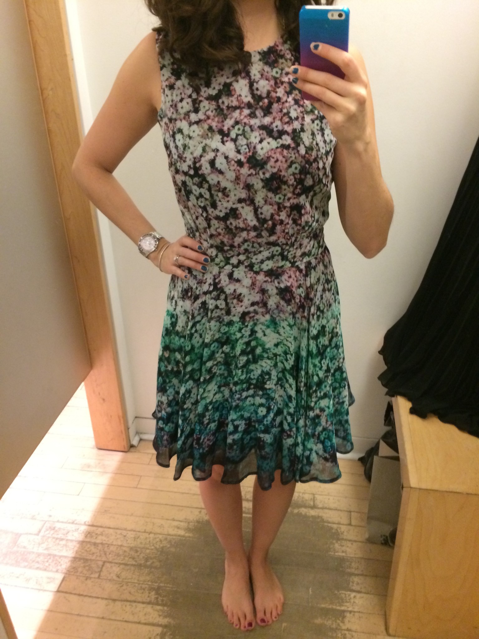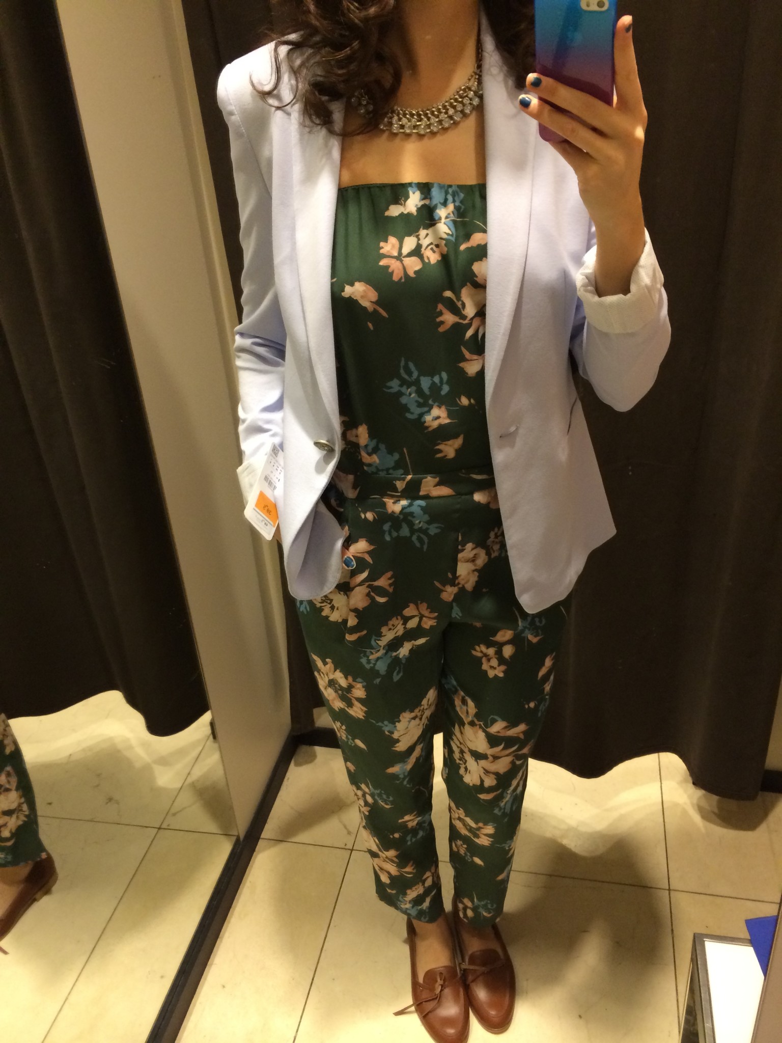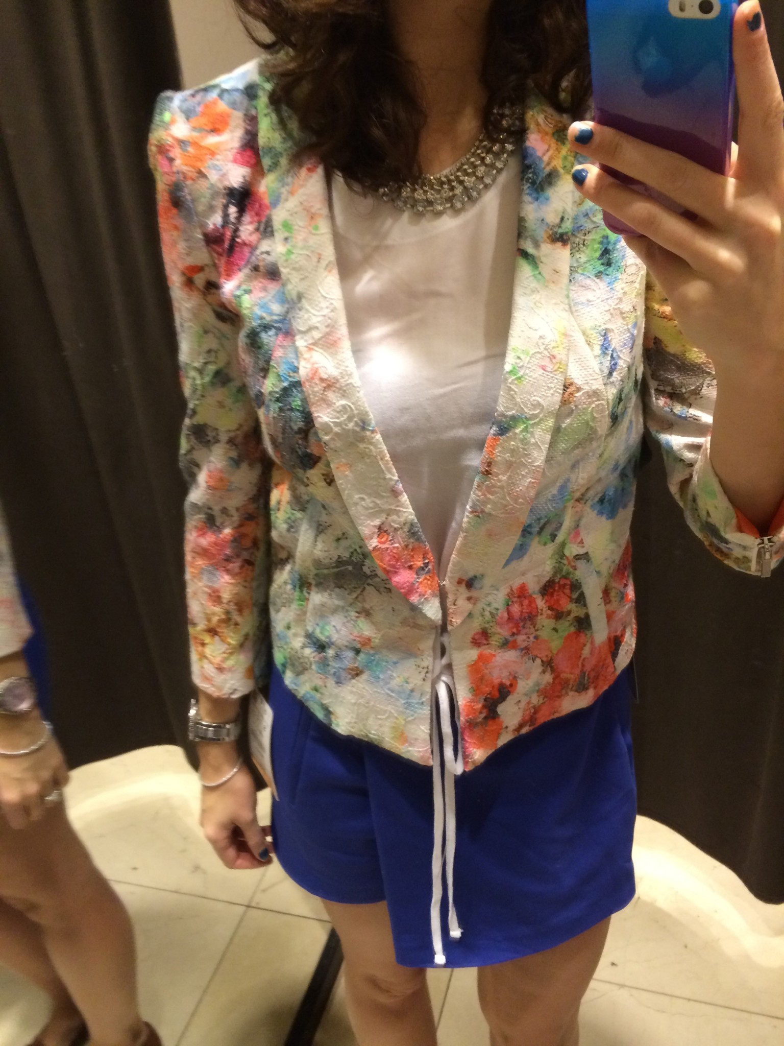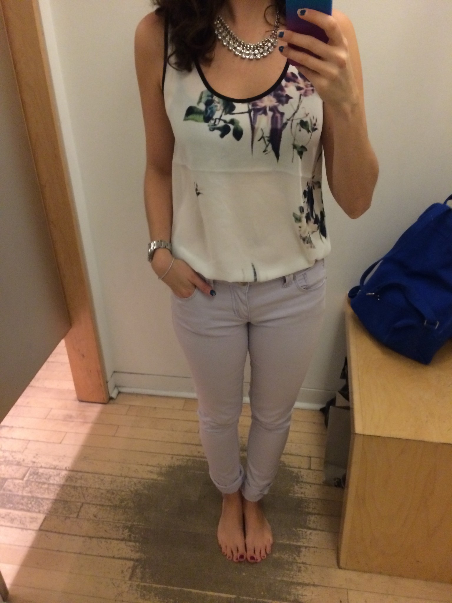 Pour ce qui est de la chasse aux morceaux qui seront tendance au printemps, ça aide de avoir jeté un coup d’oeil aux tendances printanières au préalable. Je vous en reparlerai plus en détails mais celles qu’on retrouve plus facilement en ce moment sont : les pastels, les imprimées floraux, les jupes plissées, les matières irisées et le blanc. Voici mes trouvailles dans la cabine chez Zara et French Connection. Chez H&M j’ai aussi déniché, un veston blanc pour 15$ et une jupe métallique pour 7$. Ça vaut la peine d’aller y faire un tour.
