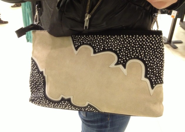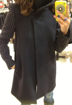 Comme à l’habitude, les sacs sont magnifiques et bien soldés, mon préféré, le noir en suède avec studs est en solde à 79,99 $. Ensuite du côté des manteaux, j’ai bien aimé le marine avec les billes décoratives au bras même s’il était un peu grand (M et plus seulement à ce Zara), il est aussi disponible et fort joli en kaki. Le bourgogne est un peu moins dans ma palette mais je l’imagine bien ce joli manteau aux bras en cuir sur une jolie blonde. Les deux sont à 139,99 $.