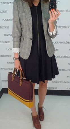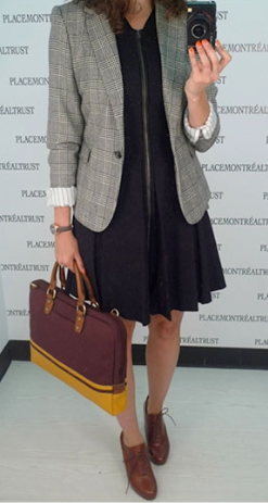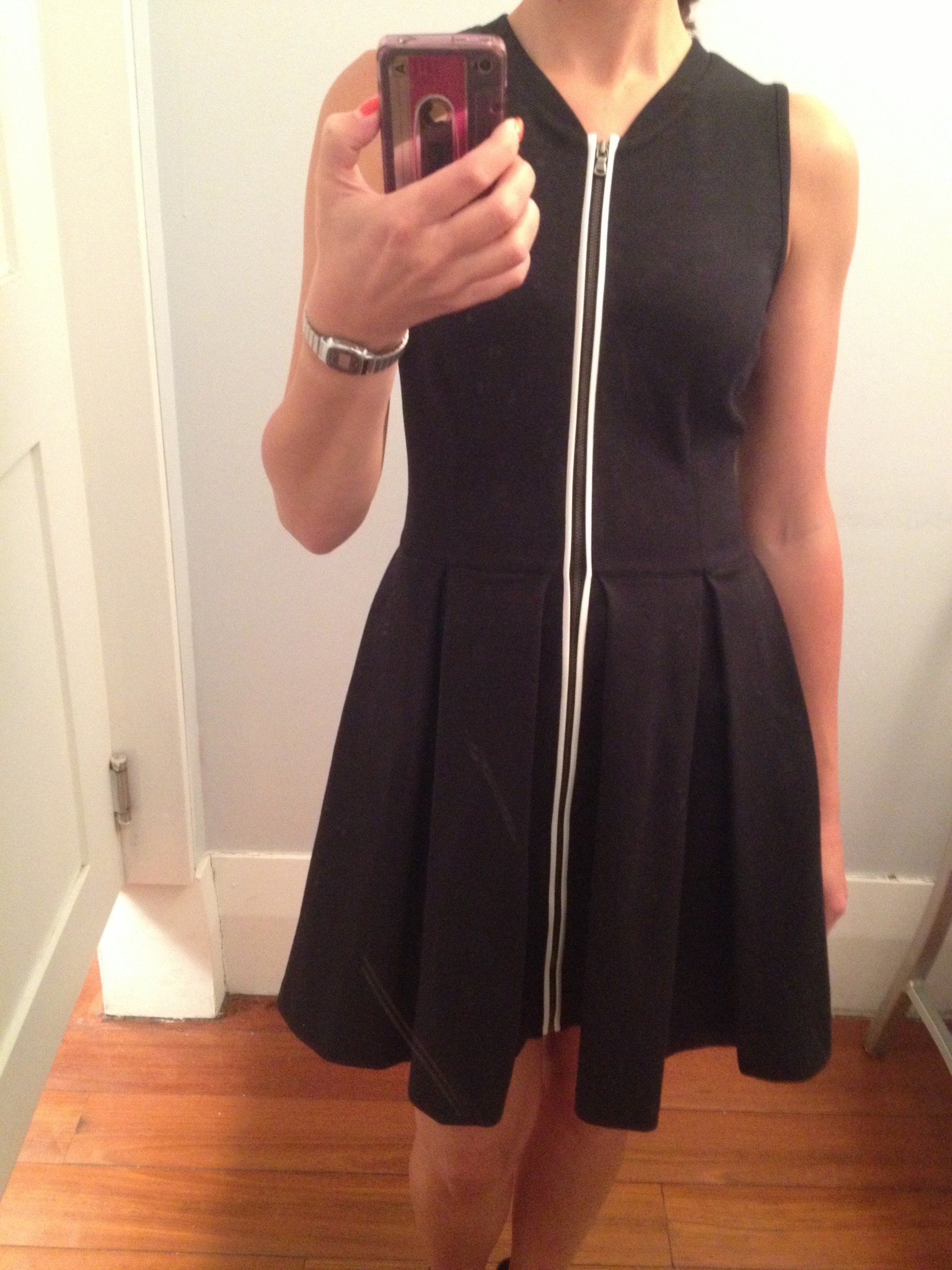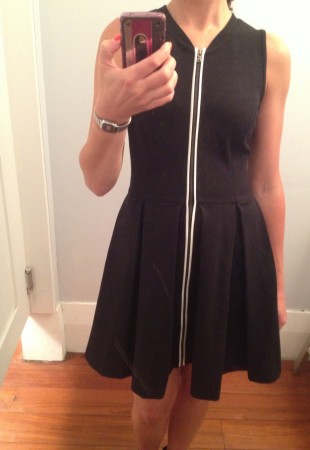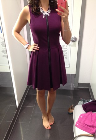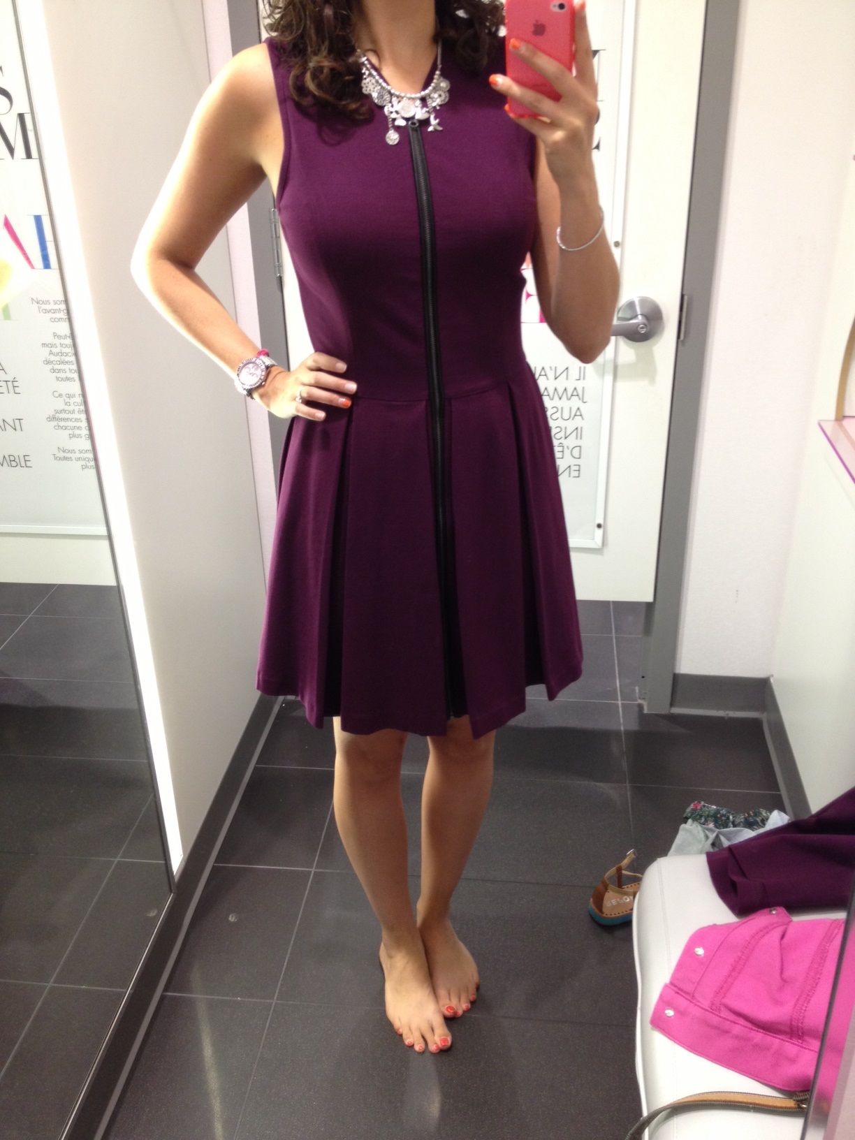 La première robe que j’ai essayée et achetée chez Smart Set (aussi vue ici dans la cabine à Place Montréal Trust) est maintenant en solde à 39,95 $ (au lieu de 59$) contre la robe Club Monaco à 169,50$ ici essayée par Marianne.