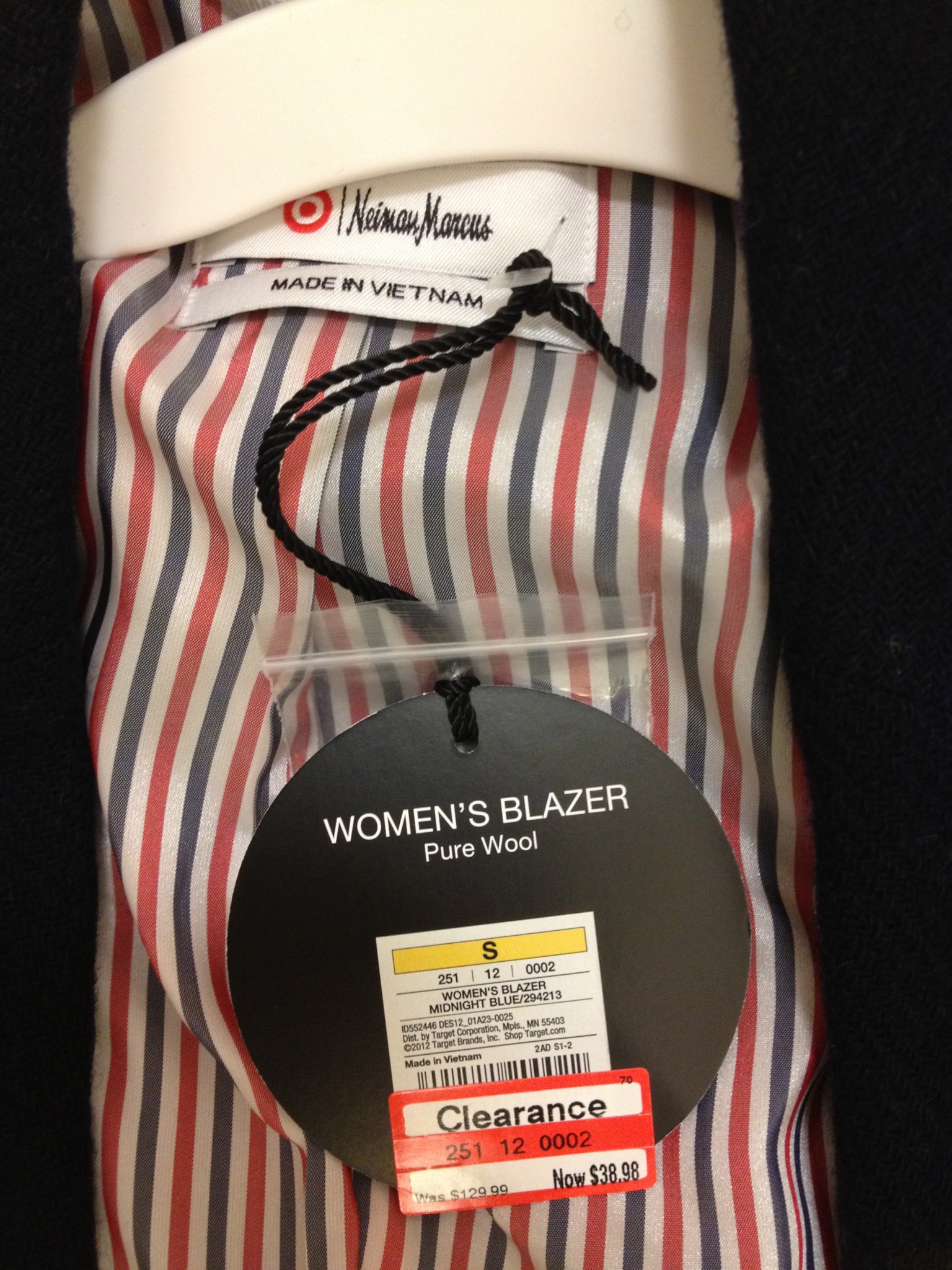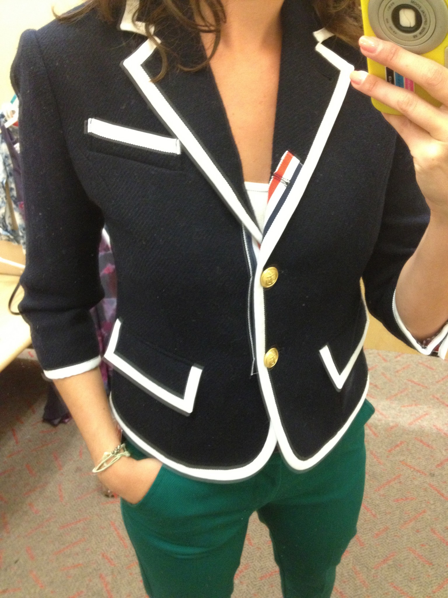 Je m’y suis rendue en janvier, j’ai donc pu profiter des soldes d’après-noël incluant la collaboration avec Neiman Marcus incluant des morceaux de Marc Jacobs, Jason Wu, Robert Rodriguez et Oscar de la Renta. Je dois avouer avoir été un peu déçue par les collections de vêtements, les plus beaux morceaux ayant déjà été vendus, mais j’ai quand même essayé qqs morceaux pour vous les montrer. La robe Robert Rodriguez était sympathique mais sans plus et la Lela Rose pas vraiment a mon goût. Le seul morceau qui m’a fait hésiter est le veston marine Thome Browne mais pas assez pour l’acheter.