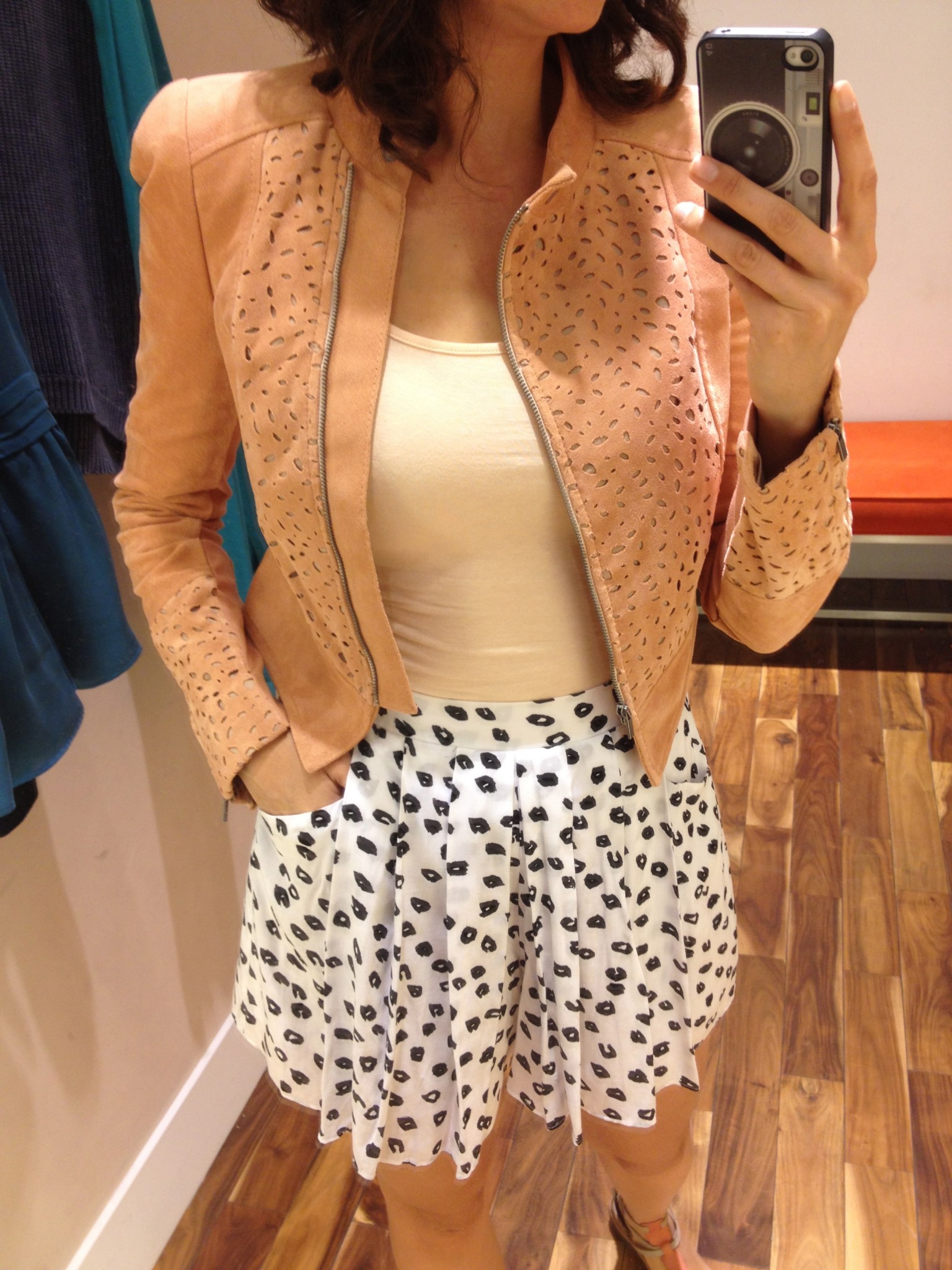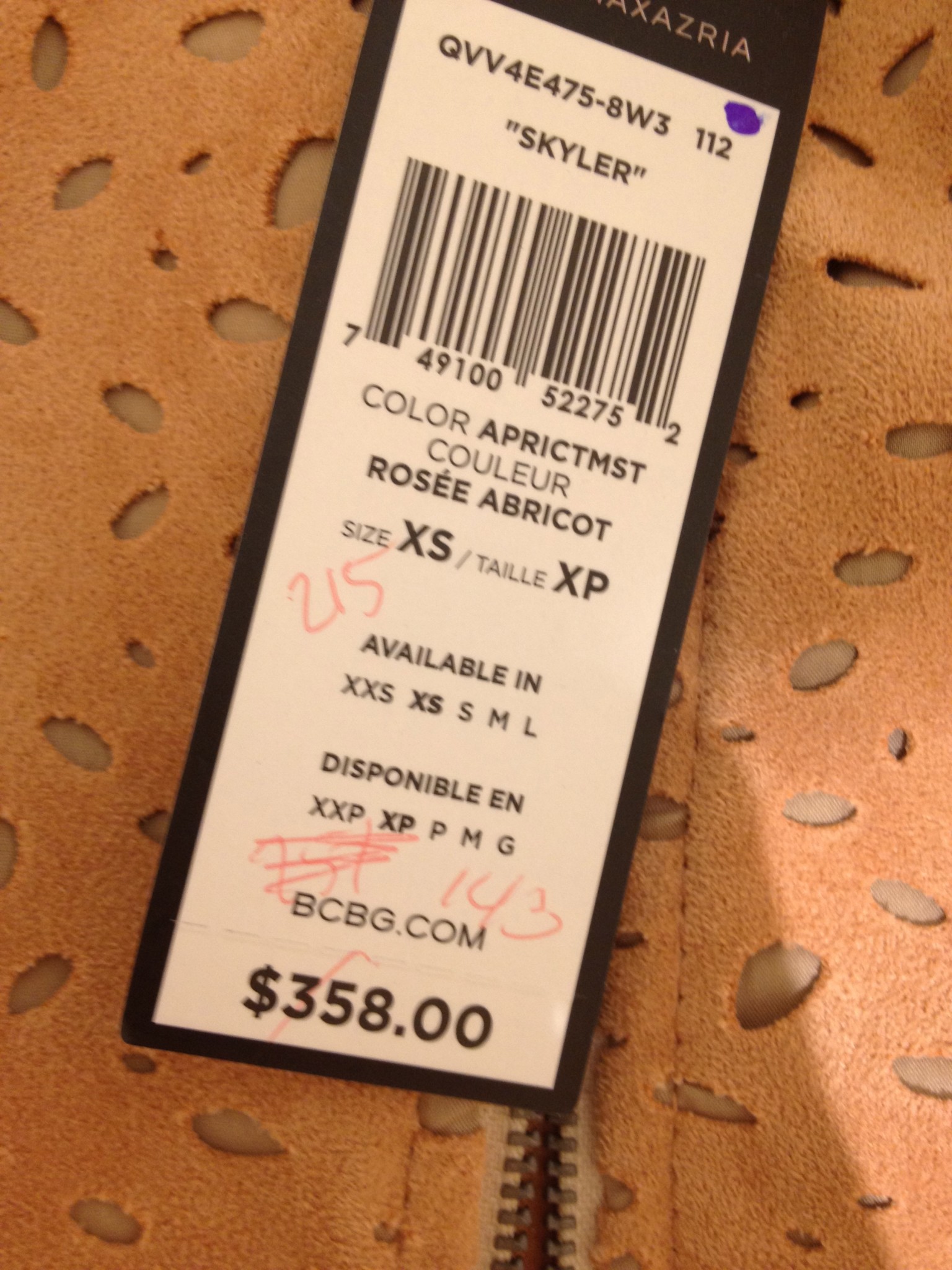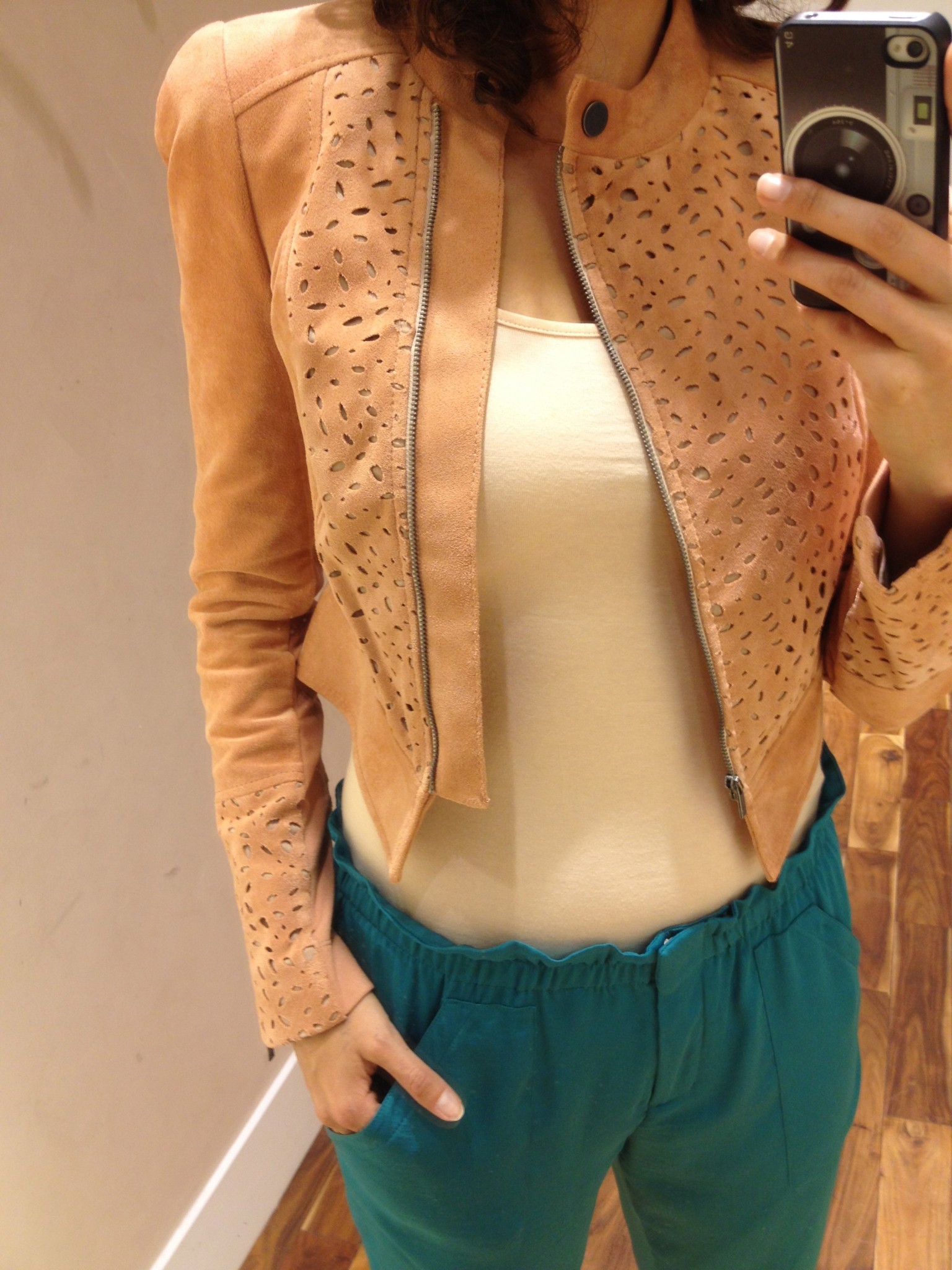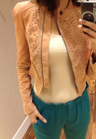 – le manteau en simili-suède saumon en solde à 143 $