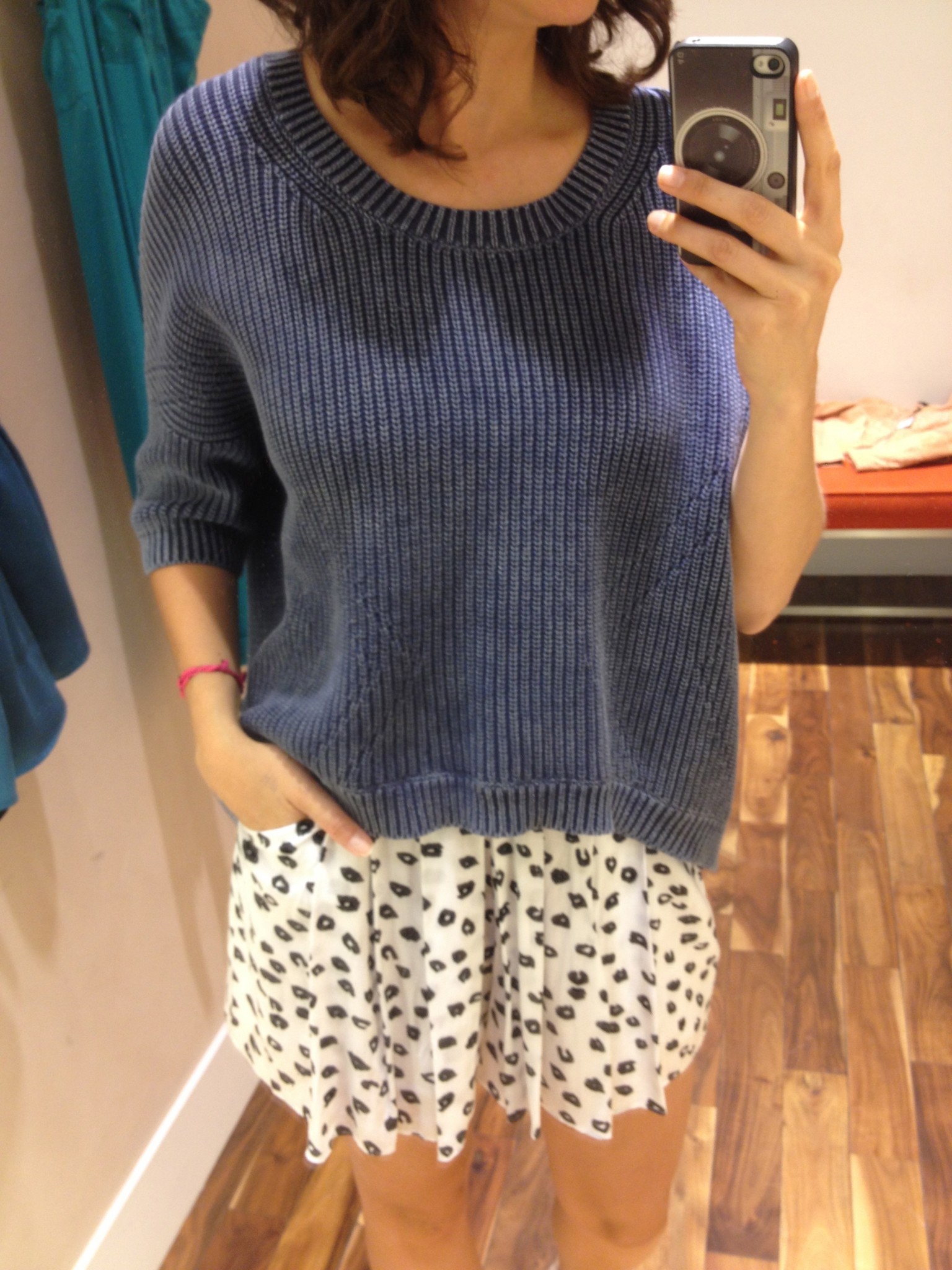 – le tricot bleu marin BCBGeneration fort joli mais tellement pas toutafait moi en solde à 59 $
