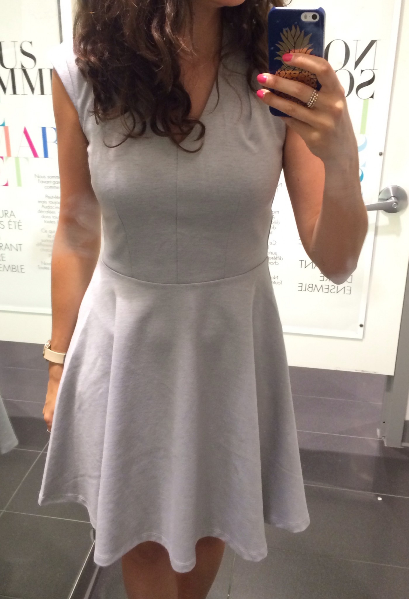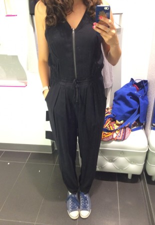 Il y a 2 items qui ont particulièrement retenus mon attention lors de ma dernière visite chez Smart Set. Premièrement, la petite robe grise (aussi dispo en noir) qui est coupée parfaitement pour mettre en valeur notre silhouette féminine et en solde à 29$. Elle est en quelque sorte la cousine de ma robe préférée de l’automne dernier. Son tissu est plus épais que celui d’une robe d’été alors c’est un super morceau à porter a longueur d’année. Deuxième morceau, le combi-pantalon, un item pas facile à trouver dans les bonnes proportions. Je l’ai essayé en M plutôt qu’en S pour avoir un peu plus d’espace au niveau du califourchon, critère de choix quand vient le temps de choisir un combi-short ou pantalon.