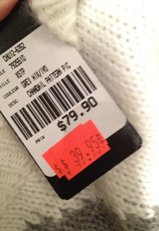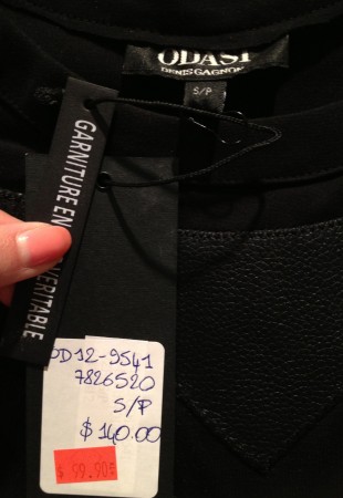 Après le 50 %, le 60 % de rabais chez Bedo. J’ai été attirée en boutique par ce chandail rétro-revisité ayant acheté le “vrai” rétro dans une vente de garage de résidence pour personnes âgées. Ce rétro chandail rouge m’a permis de gagner le concours du plus beau chandail de noël lors du party de noël de mode34b dans lequel j’étais une intrus BFF.
