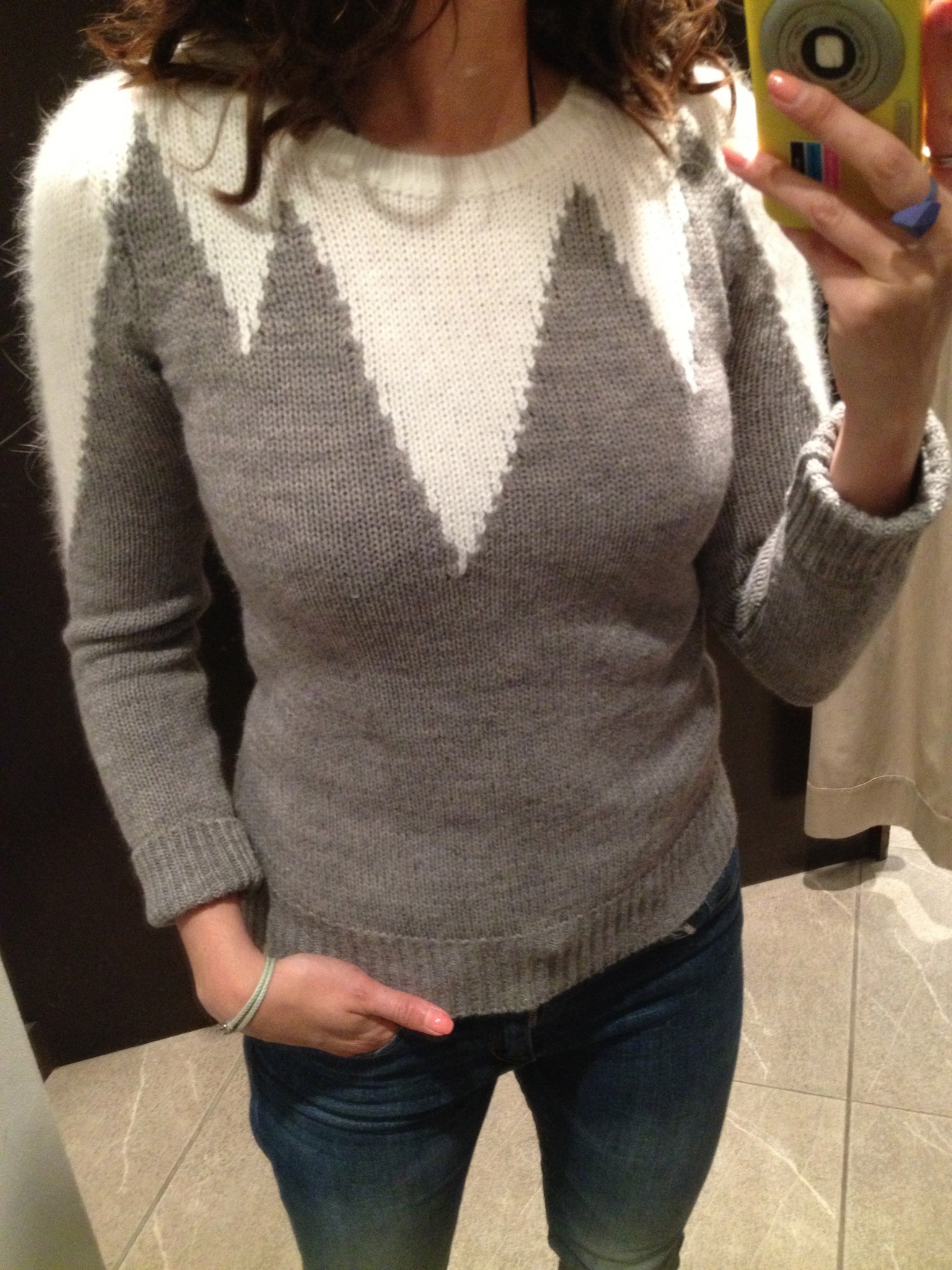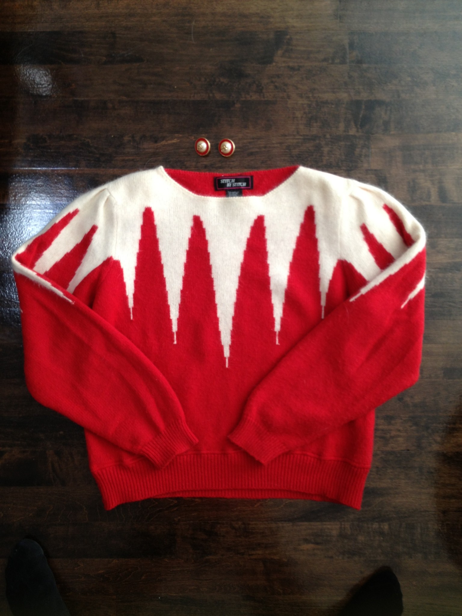 Après le 50 %, le 60 % de rabais chez Bedo. J’ai été attirée en boutique par ce chandail rétro-revisité ayant acheté le “vrai” rétro dans une vente de garage de résidence pour personnes âgées. Ce rétro chandail rouge m’a permis de gagner le concours du plus beau chandail de noël lors du party de noël de mode34b dans lequel j’étais une intrus BFF.