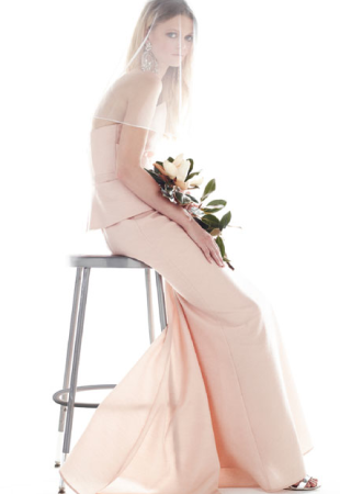 Choix #3 – Si je ne m’étais pas mariée sur la plage, j’aurais peut-être opté pour quelque chose de plus élégant, chic et voir même oser la couleur! La robe Gracie Strapless Peplum est en solde 346$ CAD