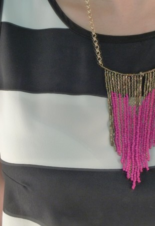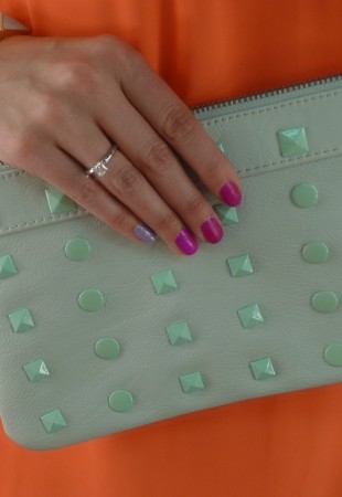 Robe Winners, 24,99$ – Pochette Vero Moda, en solde à 15$ – Bracelets Vero Moda en solde à 10$ – Lunettes de soleil Ardène, 8,50$- Sandales Jeffrey Campbell Little Burgundy, en solde à 109,98$ – Vernis à ongles Color Club Max&Co, 8,99$