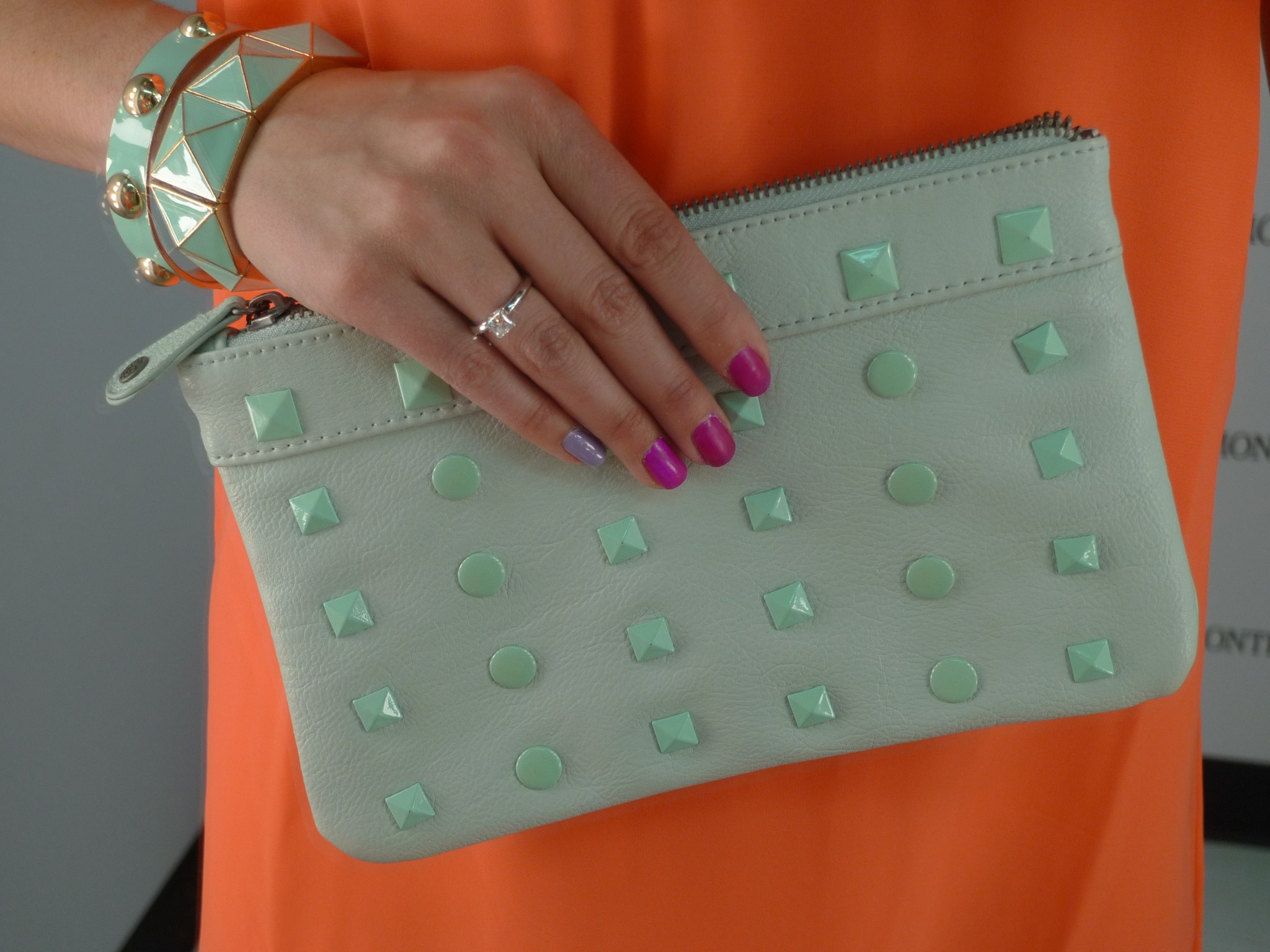 Robe Winners, 24,99$ – Pochette Vero Moda, en solde à 15$ – Bracelets Vero Moda en solde à 10$ – Lunettes de soleil Ardène, 8,50$- Sandales Jeffrey Campbell Little Burgundy, en solde à 109,98$ – Vernis à ongles Color Club Max&Co, 8,99$