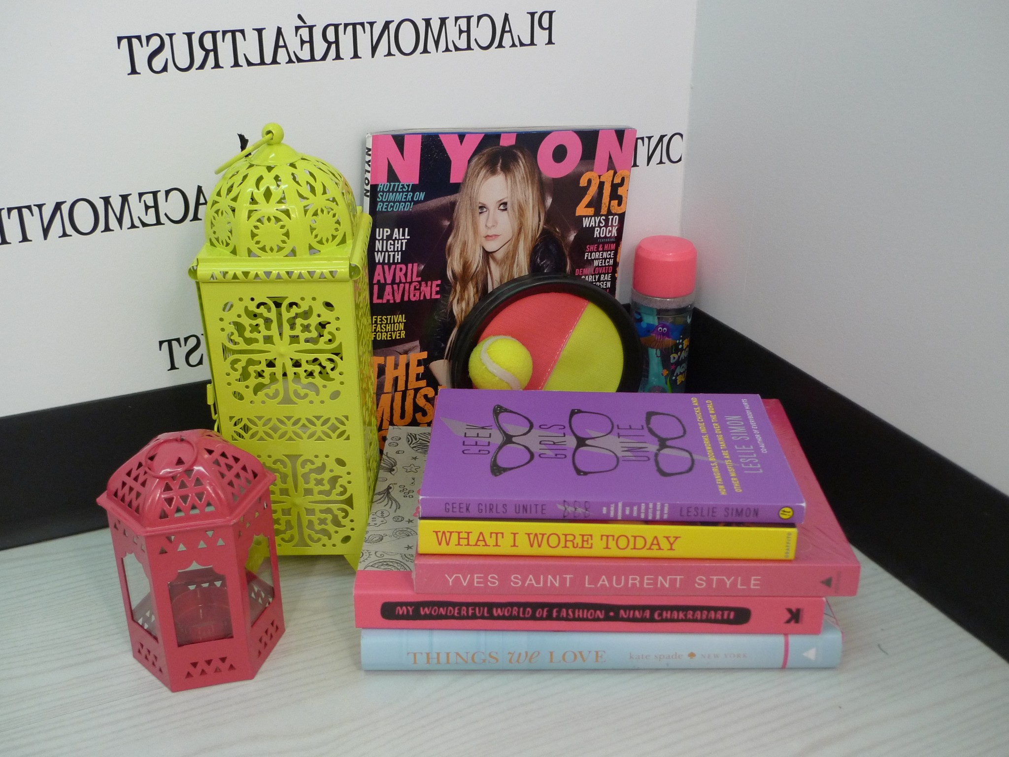 Et petite nouveauté cette année, j’utilise la thématique pour faire des mises en scène lecture, déco, beauté et cie :) Aujourd’hui lecture c’est la lecture mode avec de belles couverture néon.