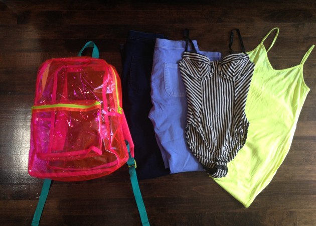 J’ai acheté 2 paires easy-jeans à la taille bien haute pour pouvoir porter des chemises nouées + des cropped tops, un body rayé noir et blanc, une maxi robe jaune et un sac à dos rose transparent pour jouer à l’éternelle adolescente cet été. Tout ça pour moins de 150 $. Les prix sont bons