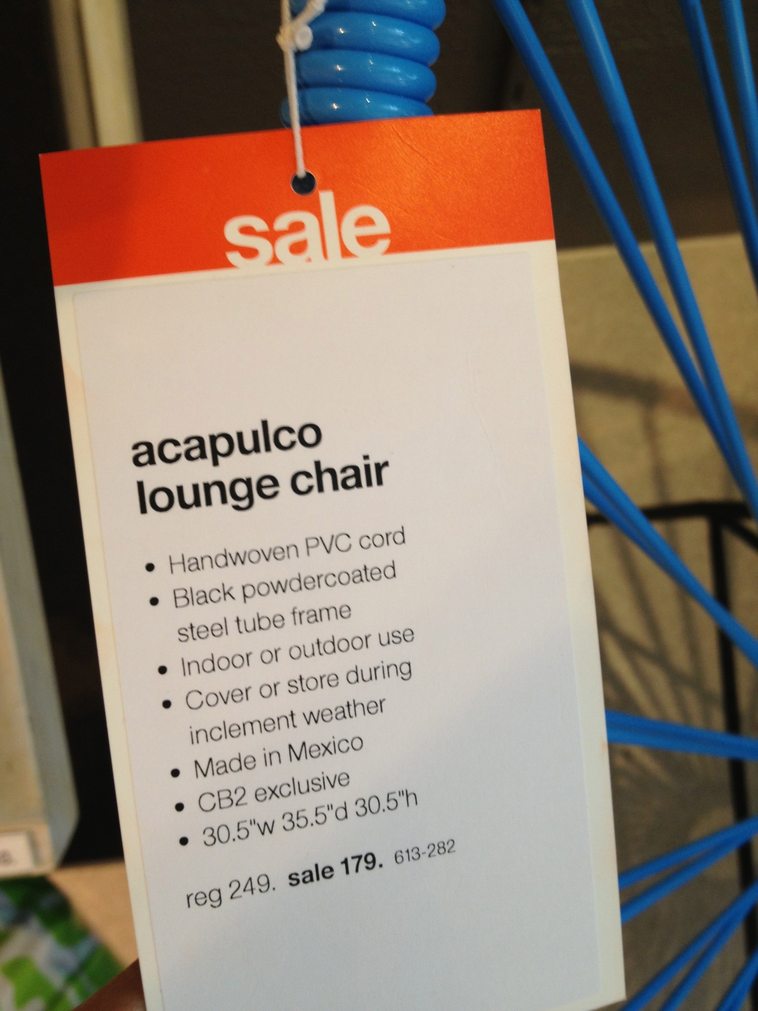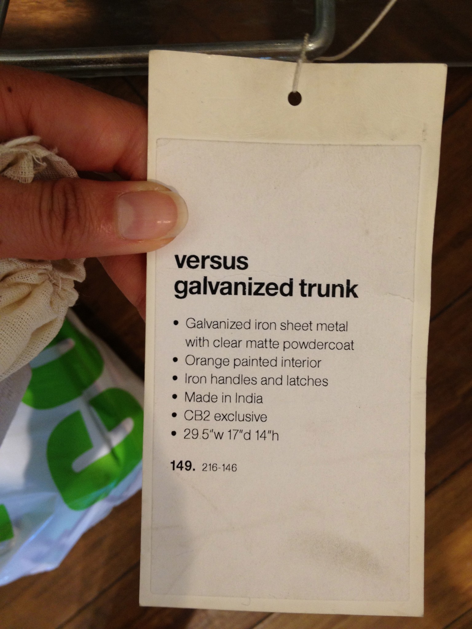 Impossible d’aller à NY sans faire un petit arrêt chez CB2. Normalement, je m’attarde plus aux petites babioles mais puisque le magasin était vide, j’en ai profité pour me laisser inspirer par l’ensemble de l’oeuvre et profiter de l’air climatisé alors qu’il faisait 49 à l’extérieur. Après une courte investigation sur le site web, je vous confirme que CB2 livre au Canada et pour éviter les mauvaises surprises à la livraison, les prix incluent les frais de douane. Un beau morceau de robot pour CB2. Par contre, on se retrouve avec une facture assez salée merci avec les frais de livraison. Exemple, le coffre en métal galvanisé à 149 $ en US est 169 $ en canadien + les frais de livraison, ce qui nous donne une facture de 313,88 $, soit le double du prix. A ce prix-la, on se tape l’aller-retour Montréal-NYC en voiture et on met le coffre dans le coffre :) Les 2 boutiques les plus près : Toronto ou NYC.