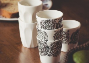 3) Article SALLE À MANGER: 2 gagnants: a) Les tasses à espresso avec impressions noires (x4) de Art & Manufacture en plus d’une carte-cadeau de 100$ chez Target b) L’assiette et les 2 tasses espresso beiges de Art & Manufacture