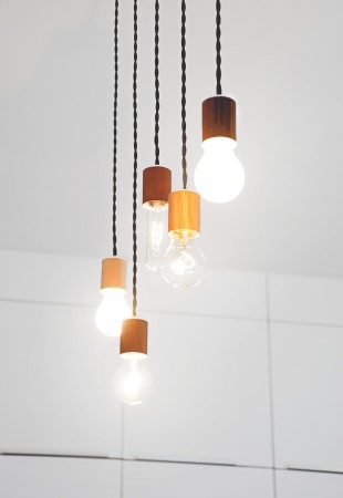 Nos coups de cœur cuisine : suspension géométrique en noyer fabriquée par Jean-Philippe, l’œuvre d’un artiste New-Yorkais nommé The Subway Artist Enrico Miguel Thomas et la machine à espresso et ses tasses dépareillées mais signées d’artisans québécois et américains.