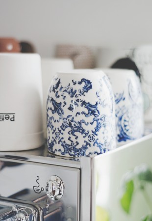 Petit conseil déco #2 : Choisissez un ou deux items uniques qui donneront du ton à votre cuisine. Une jolie planche à découper (West Elm), des tasses à café uniques, un bol à fruit original.