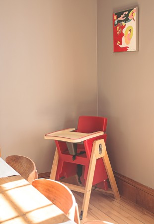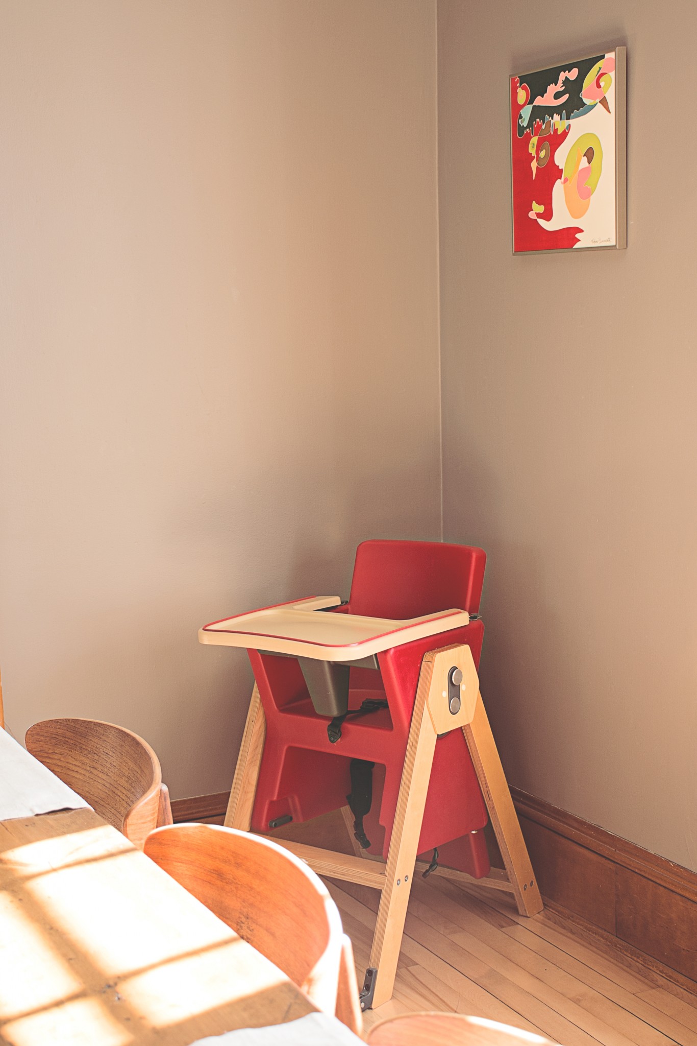 Afin d’assouvir notre passion pour les chaises, nous n’avons pas laissé en plan nos petites princesses. Nous avons choisi une chaise haute à deux niveaux d’un designer québécois (Age Design) pour Simone et une jolie chaise blanche aux lignes épurées IKEA pour notre Cécile qui a trois ans et demi.