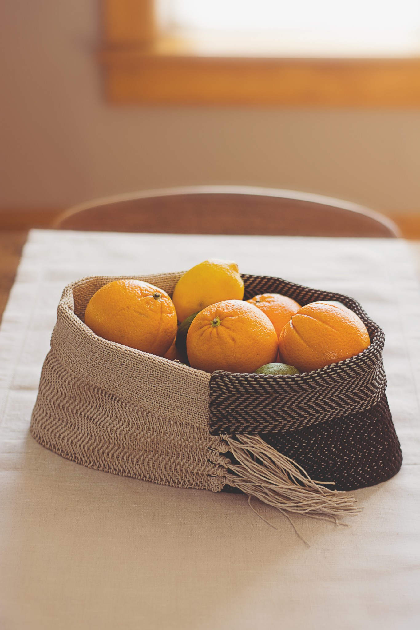 – d’un panier Sainte Marie Design Textile remplie d’oranges (et de quelques limes pour la couleur) à 135$