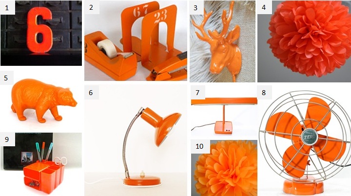 1) Lettre industrielle (à confirmer) 2) Rangement à 14 $ sur Etsy 3) Porte manteaux à 13,25 $ sur Etsy 4) Pompom à 4 $ sur Etsy 5) Bibelot à 25 $ sur Etsy 6) Lampe à 29 $ sur Etsy 7) Lampe à 52 $ sur Etsy 8) Fan à 64 $ sur Etsy 9) Rangement à 22 $ sur Etsy 10) Pompon à 4 $ sur Etsy