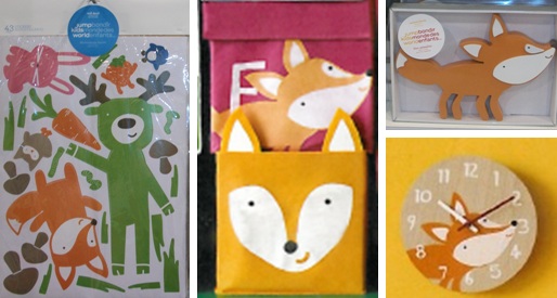 J’ai cette fascination depuis quelque temps pour les renards, surtout lorsqu’il s’agit d’inspirations renardesques pour les tout petits. Je vous présente donc mes idées déco pour la chambre de votre petit ange adoré. Ce qui est bien avec cette thématique c’est qu’elle s’adapte tout aussi bien aux fillettes qu’aux garçons. PS. Lors de mon dernier passage à Brooklyn je n’ai pu résister au petit t-shirt Gnome avec le renard pour ma petite Cécile. Les liens pour la première mosaïques : T-shirt Renard Gnome Enterprises, Autocollants muraux, Tissu Holli Zollinger, Coussin renard velour, Sérigraphie sur panneau de bois, Queue de renard, Coussin tricot renard, Petite chaise orange, Tapis renard à vélo, Coussin Mr. Fantastic Fox Je vous suggère également les sympathiques éléments de déco de chez Maxi & Cie que l’on retrouve sur la 2e mosaïque : autocollants muraux, bacs de rangement, appliqué mural et horloge murale. Bon shopping! Julie